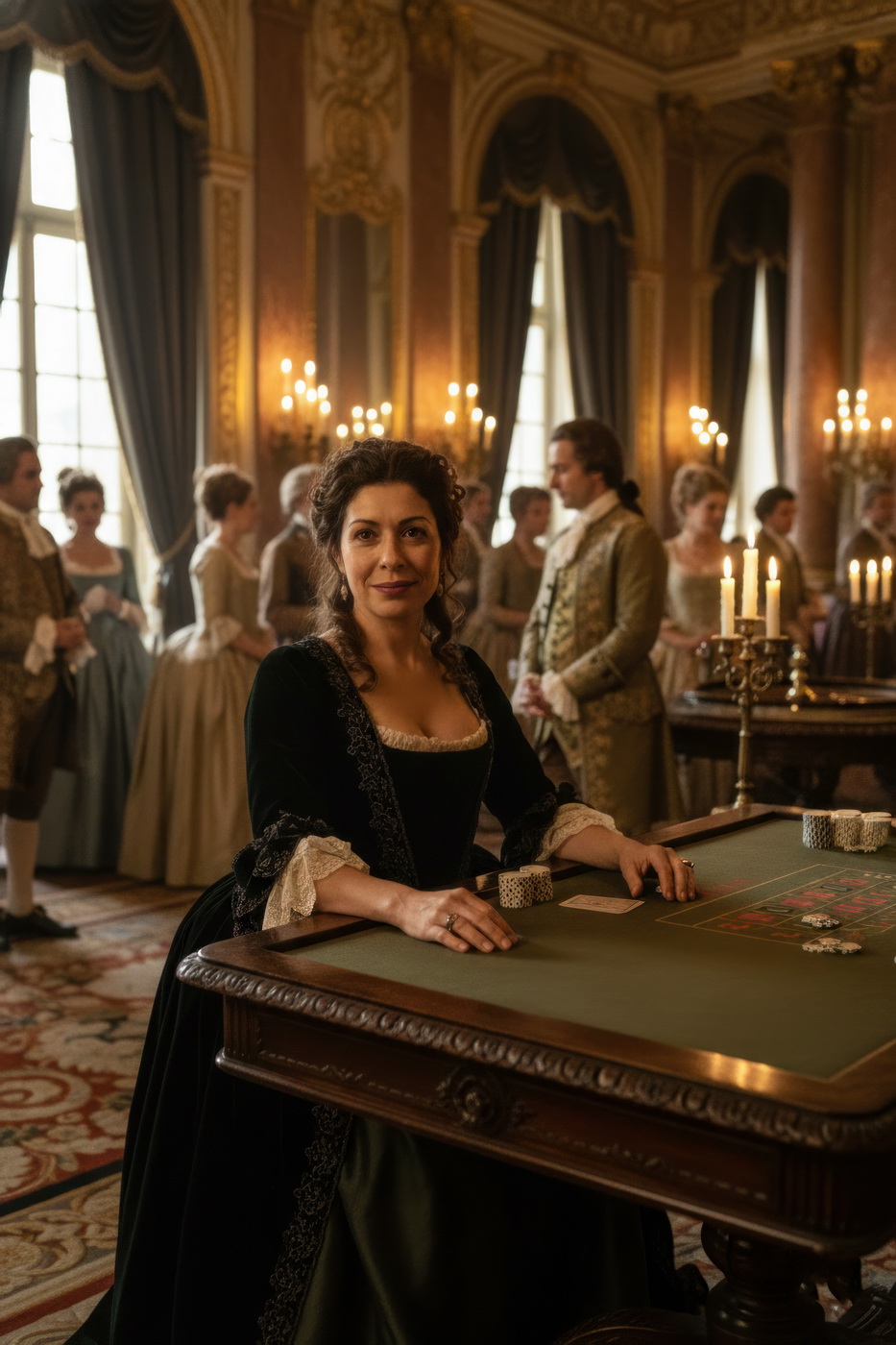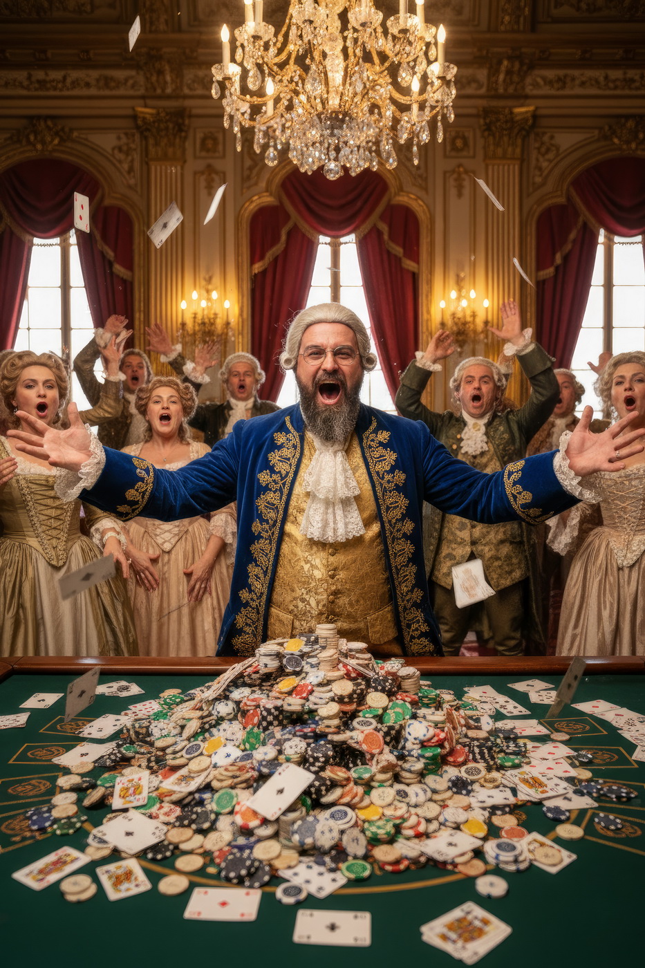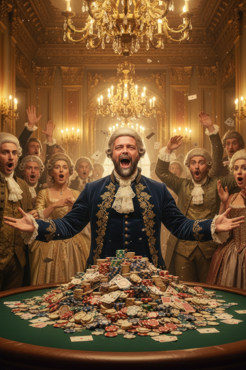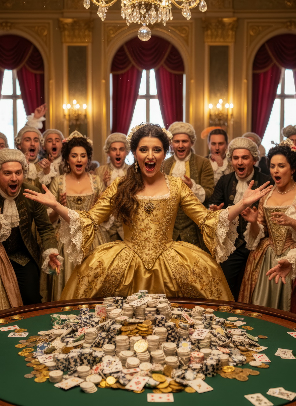 Apostar con peluca y cara de no haber roto un plato. Esto va de casinos pero con la estética de Barry Lyndon, o sea, mesas de juego en salones del siglo XVIII iluminados con velas, gente con pelucas empolvadas apostando fortunas como si fuera lo más normal del mundo y perdiéndolas con la misma calma elegante; el “protagonista espiritual” sería Redmond Barry, un tipo que sube y baja socialmente a base de cartas, suerte y bastante cara dura, y lo curioso aquí es el contraste: todo parece refinado y silencioso… pero en realidad es el mismo vicio de siempre, solo que con mejores modales y ropa mucho más incómoda.