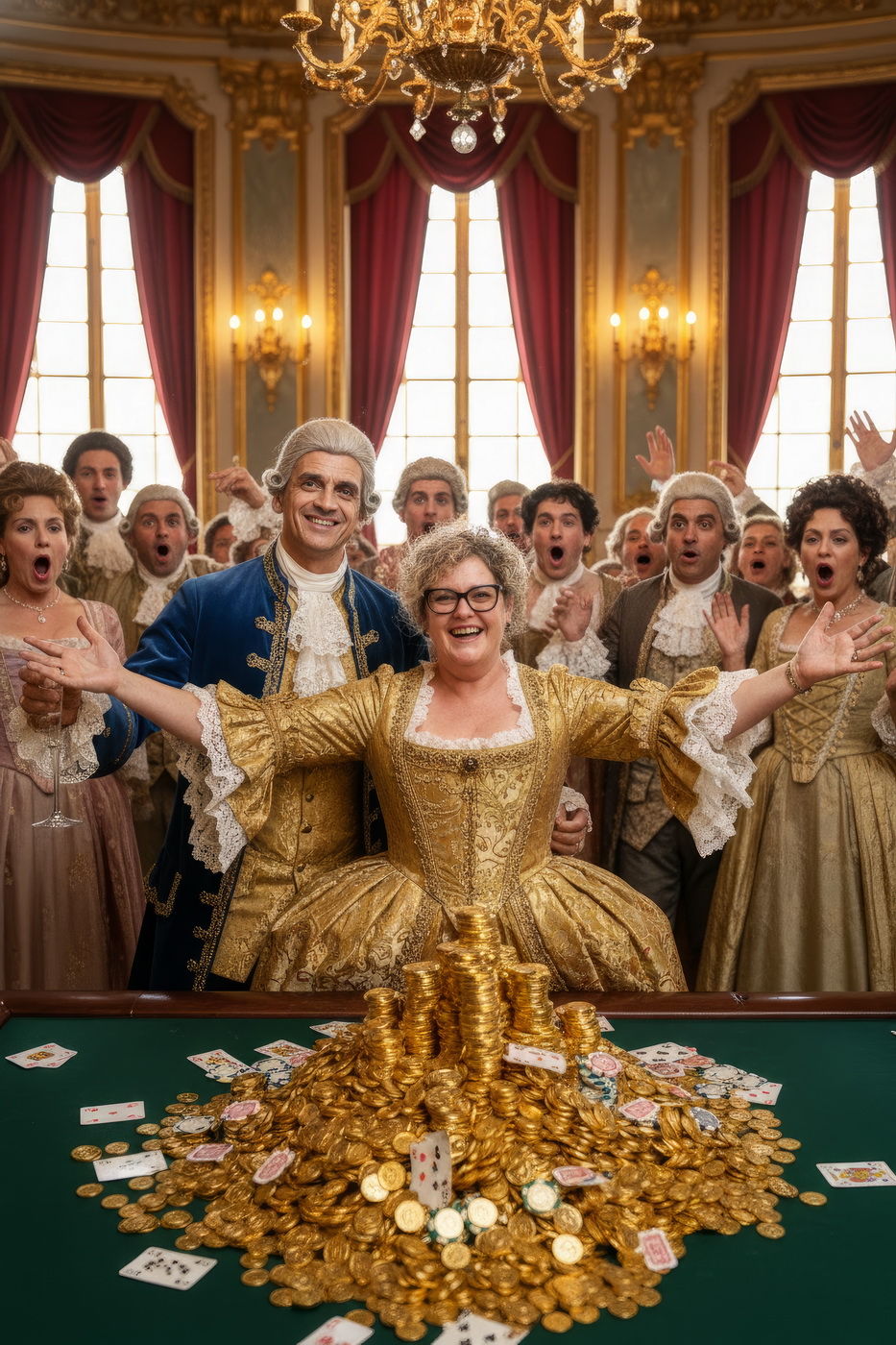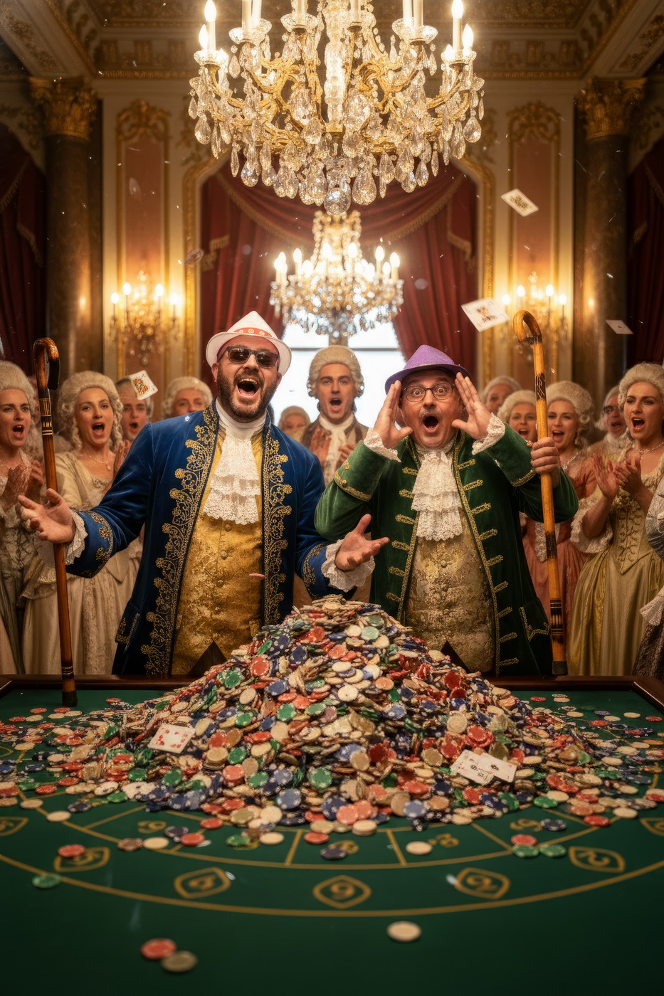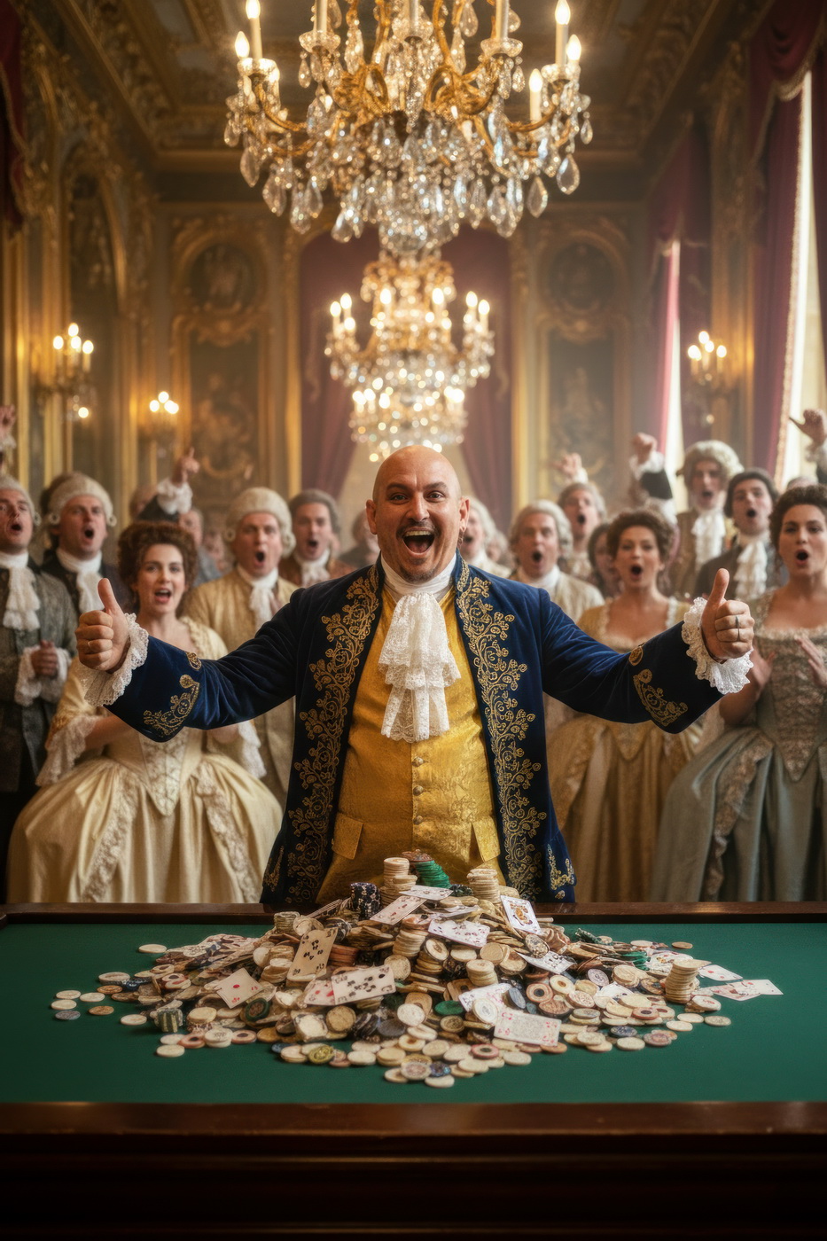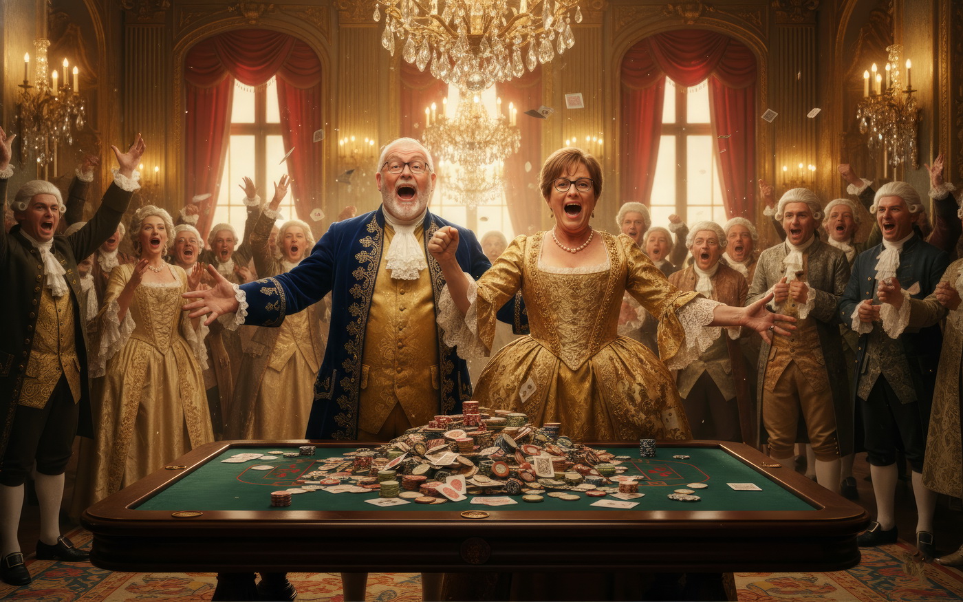 Apostar con peluca y cara de no haber roto un plato. Esto va de casinos pero con la estética de Barry Lyndon, o sea, mesas de juego en salones del siglo XVIII iluminados con velas, gente con pelucas empolvadas apostando fortunas como si fuera lo más normal del mundo y perdiéndolas con la misma calma elegante; el “protagonista espiritual” sería Redmond Barry, un tipo que sube y baja socialmente a base de cartas, suerte y bastante cara dura, y lo curioso aquí es el contraste: todo parece refinado y silencioso… pero en realidad es el mismo vicio de siempre, solo que con mejores modales y ropa mucho más incómoda.