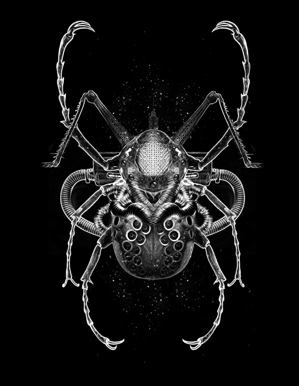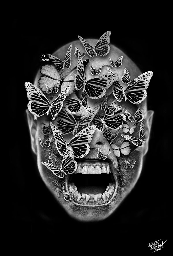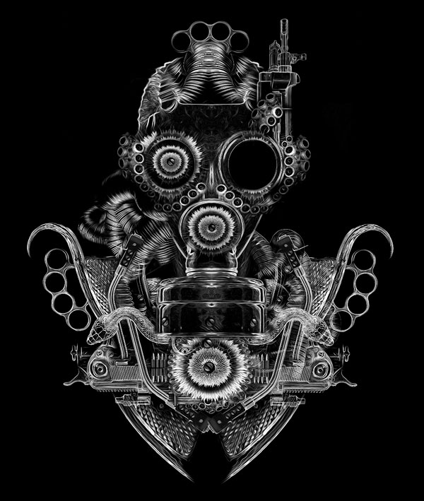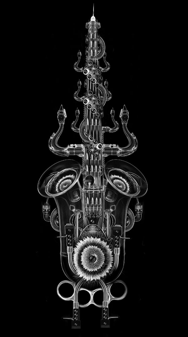 Esta serie de ilustraciones llamada Fantasmagorik nos llevan a un mundo monocromático y contrastante, lleno de retratos y elementos con un estilo de esculturas digitales gracias al manejo de los brillos y sombras. Una gran colección de imágenes realizadas por este artista francés que ha trabajado para diferentes clientes incluyendo algunos trabajos exclusivos para Adidas Originals.