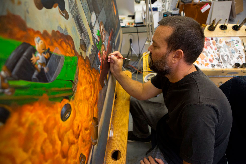While focusing on music theory at a local community college Bob began taking drawing and painting classes. Eventually his interest in art took over and he transferred to Otis College of Art and Design in 1998 where he earned his Bachelors Fine Art Degree in illustration.. After graduation in 2001 he freelanced working for such clients as The Fox Family Channel, Aflac, Kraft, Intel, The Village Voice, American Airlines, Southwest Airlines, Random House Publishing, and numerous editorial magazines.