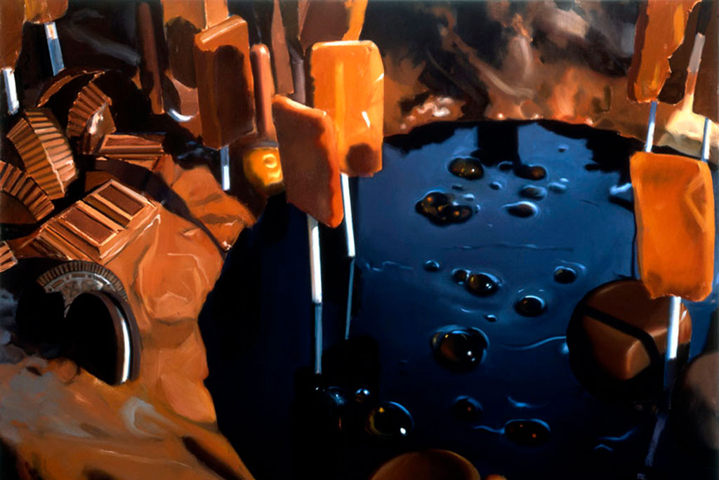 El paisaje como objeto de deseo es una vieja aspiración de la pintura. Llegó al extremo en el misticismo con que los románticos alemanes y británicos de los siglos XVIII y XIX se enfrentaban a la representación de la naturaleza, a la que entendían como un vehículo para ahondar en los sentimientos. Quizá la idea dual de la observación cercana y la importancia de la imaginación que aplicaban Friederich, Turner y Constable al colocar el caballete frente a una panorámica natural no desagrade al estadounidense Will Cotton (1965), que quiere idealizar el paisaje, desde luego, pero construyéndolo con gominolas, pasteles, algodón de azúcar, macaroons y cualquier otro tipo tipo de golosina.