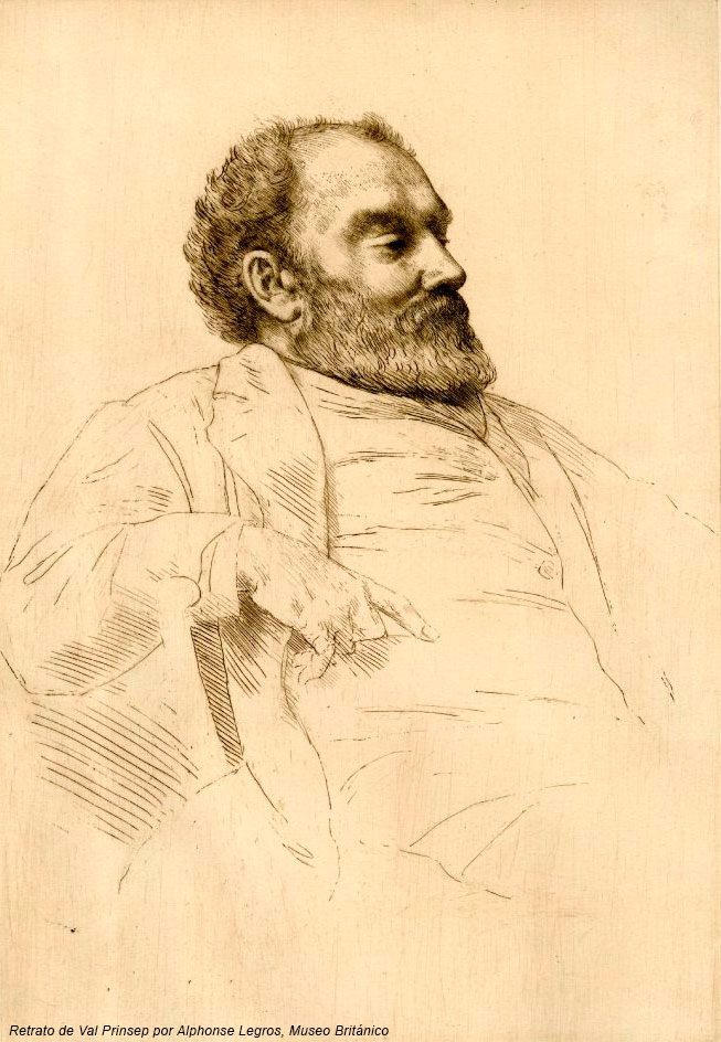 Henry Prinsep era amigo íntimo de G. F. Watts, que hizo de tutor de su hijo. Val Prinsep también trabajó en París en el Atelier Gleyre. El personaje 'Taffy' de la novela Trilby de su amigo George du Maurier está basado en su personal. Tenía una relación estrecha con John Everett Millais y Edward Burne-Jones, con el que viajó por Italia. Colaboró con Rossetti y otros en la decoración del hall de la Oxford Union. Al igual que otros miembros de la Hermandad Prerrafaelista enseñó en el Working Men's College a mediados del siglo XIV.