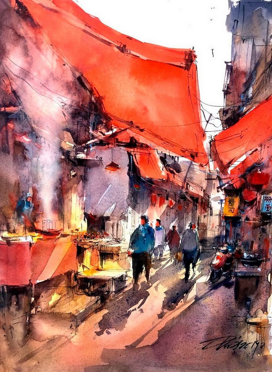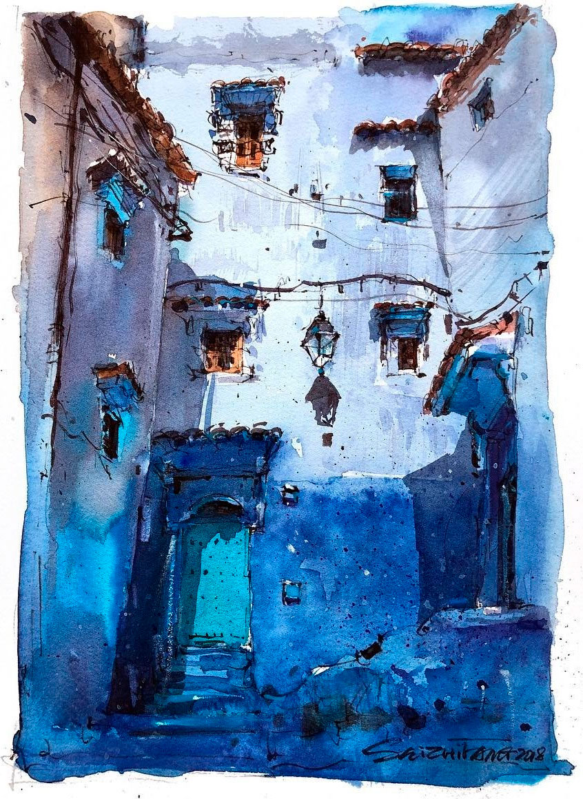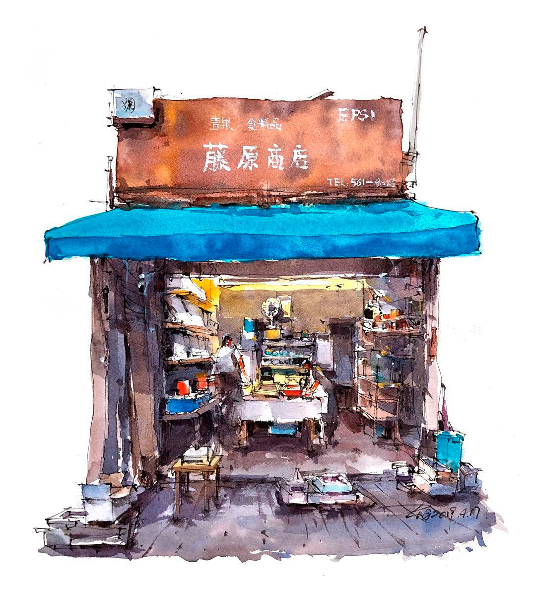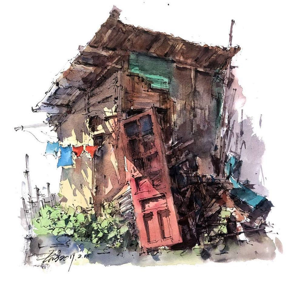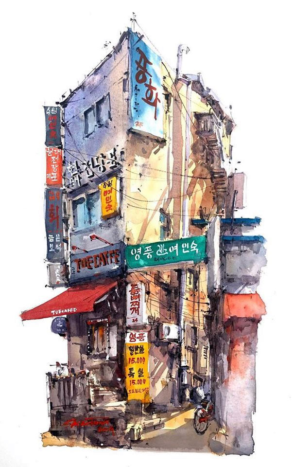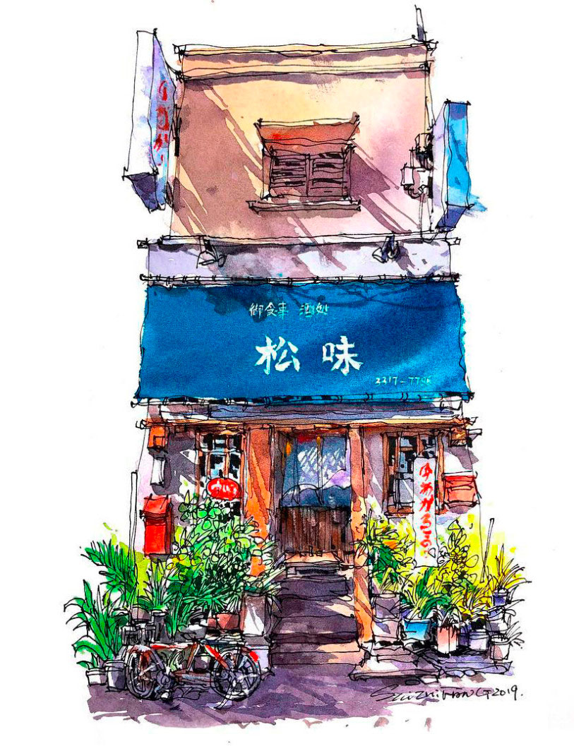Estos dibujos urbanos en acuarela se han vuelto bastante populares entre los artistas viajeros, y Shi verdaderamente ha logrado perfeccionar este arte. Hechos de forma relajada y trabajando rápidamente para capturar detalles efímeros, Shi usa una pluma negra para trazar contornos y detalles antes de incorporar el color. Cada escena presenta el contraste perfecto entre luz y sombra, dando vida a los bocetos urbanos y estudios arquitectónicos del talentoso artista.