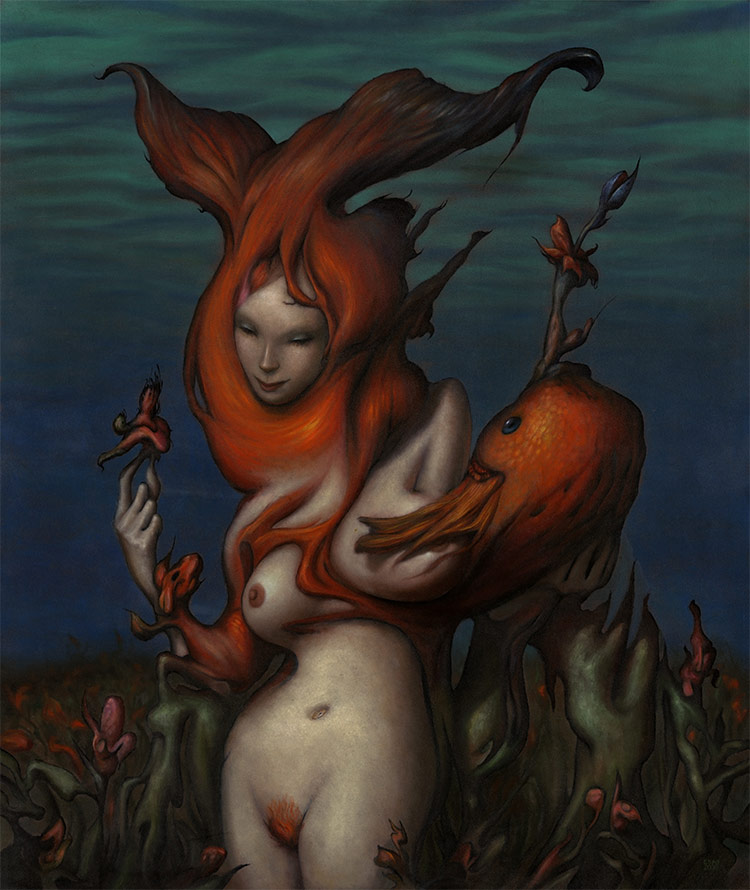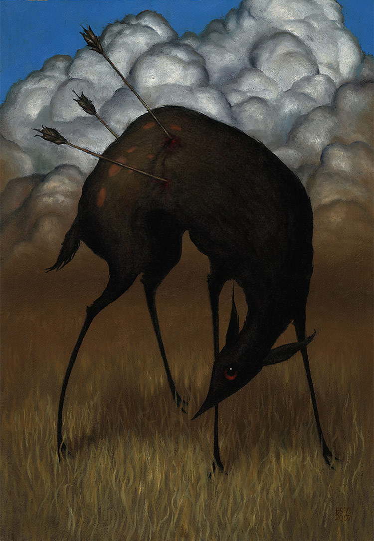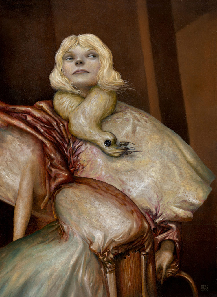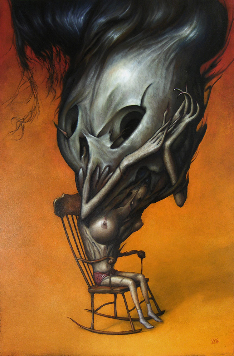 Esao Andrews es un pintor estadounidense que trabaja con óleo sobre paneles de madera. Su obra mezcla el esperpento gótico, el erotismo y el surrealismo.