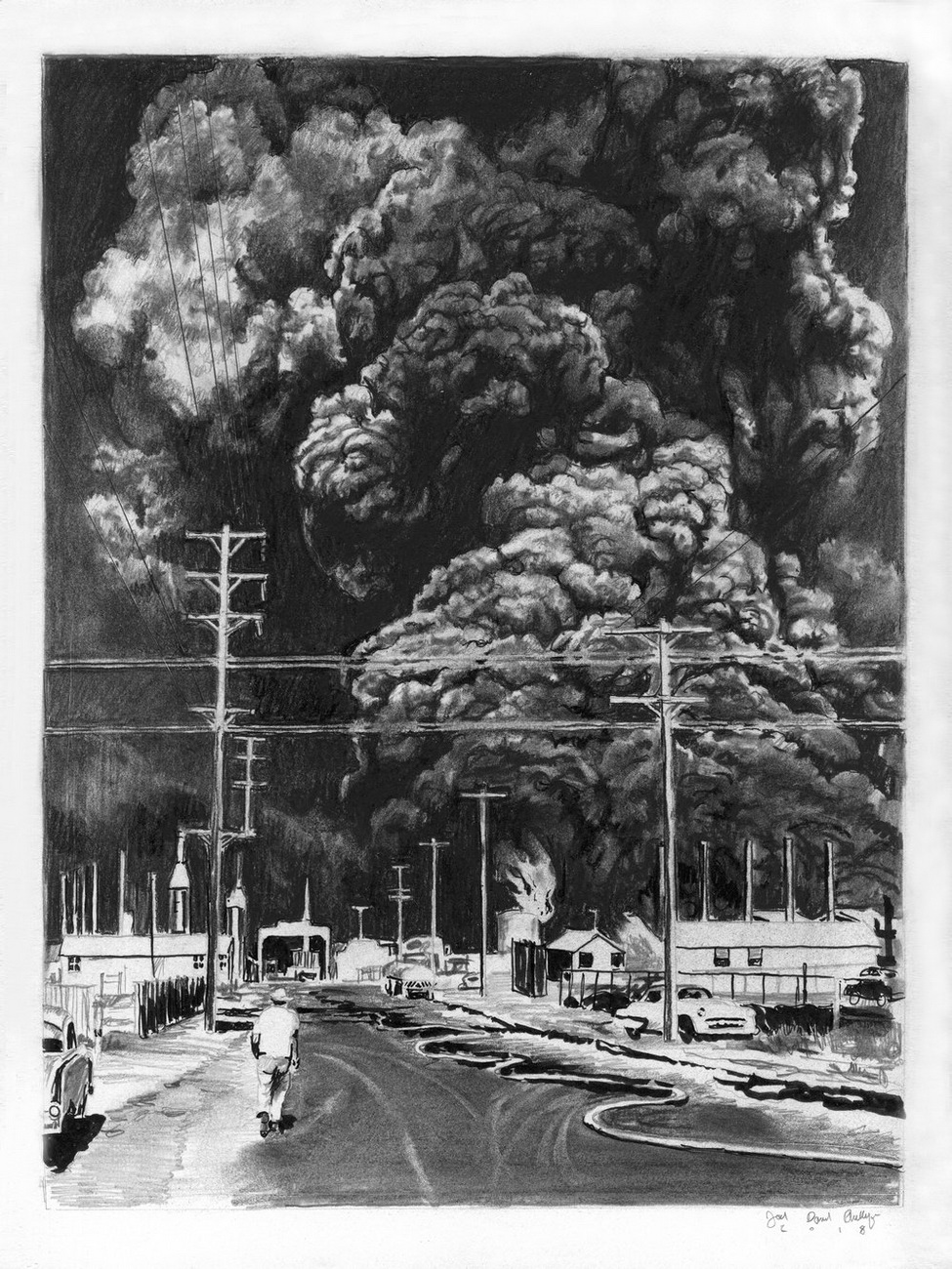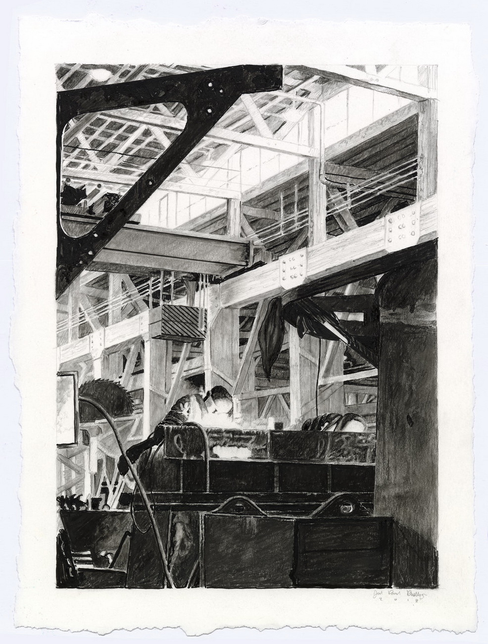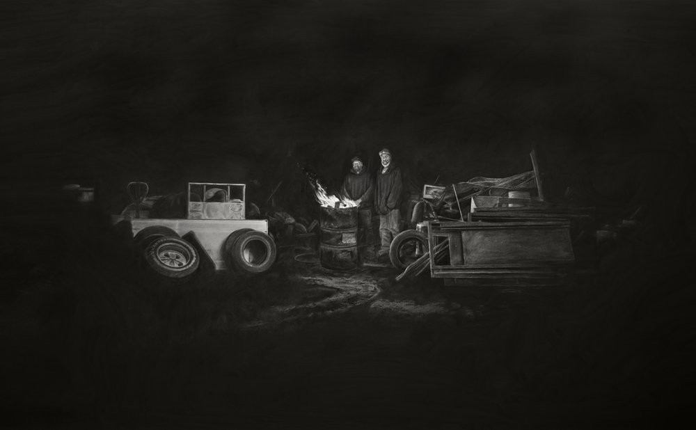 Joel Daniel Phillips es un artista estadounidense cuyo trabajo se centra en hacer preguntas sobre la verdad, la amnesia histórica y la veracidad de las historias que nos contamos sobre nuestro pasado colectivo. Empleando los principios del dibujo y la pintura clásicos en formatos monumentales, las obras de Phillips son recontextualizaciones de material histórico de archivo y recorren la línea entre describir una historia compartida y olvidada y profetizar un aterrador futuro orwelliano.