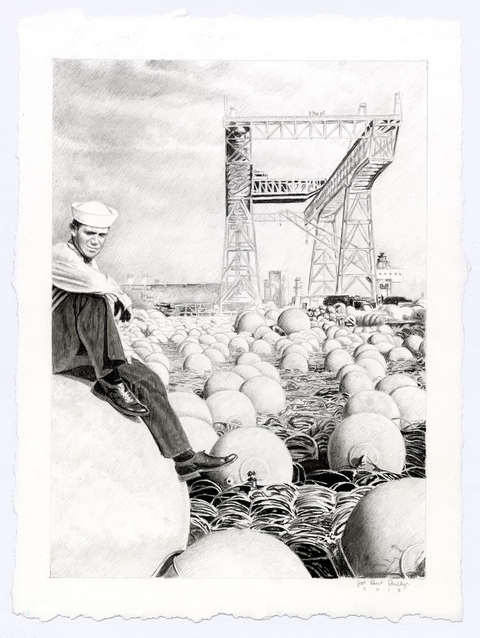 Joel Daniel Phillips es un artista estadounidense cuyo trabajo se centra en hacer preguntas sobre la verdad, la amnesia histórica y la veracidad de las historias que nos contamos sobre nuestro pasado colectivo. Empleando los principios del dibujo y la pintura clásicos en formatos monumentales, las obras de Phillips son recontextualizaciones de material histórico de archivo y recorren la línea entre describir una historia compartida y olvidada y profetizar un aterrador futuro orwelliano.