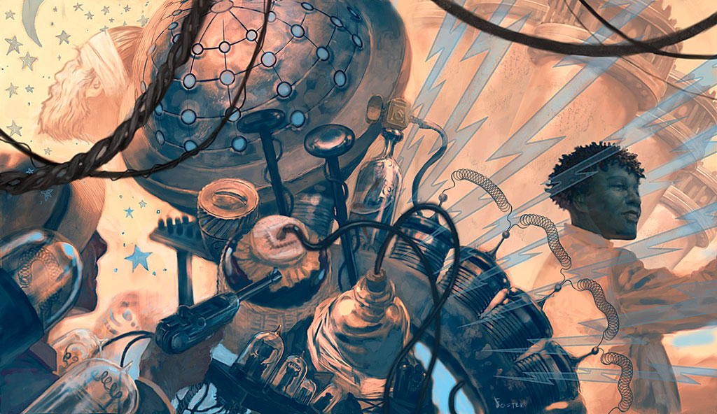 Jon Foster es un artista que vive en Providence, Rhode Island, USA. Ilustrador freelance y consumado pintor, su obra se mueve dentro del mundo de la fantasía y la ciencia ficción, recreando mundos imaginarios muchas veces caóticos y llenos de violencia. Sus personajes se sitúan entre escenas de onírico simbolismo y cruda realidad, todo ello aderezado por androides sacados de algún mal sueño de Stars Wars y seres mitológicos de todo tipo. Con una gran técnica y un uso del color directo y explosivo, Jon Foster nos presenta un portafolio lleno de imaginación y simbolismo.