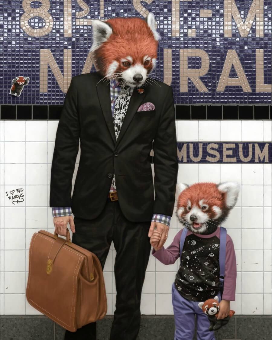 Entre sus colecciones se encuentran retratos de parejas o de personas sentadas en los asientos del transporte. A cada una se le ve realizando actividades cotidianas con un guiño a la apariencia de su animal en cuestión.