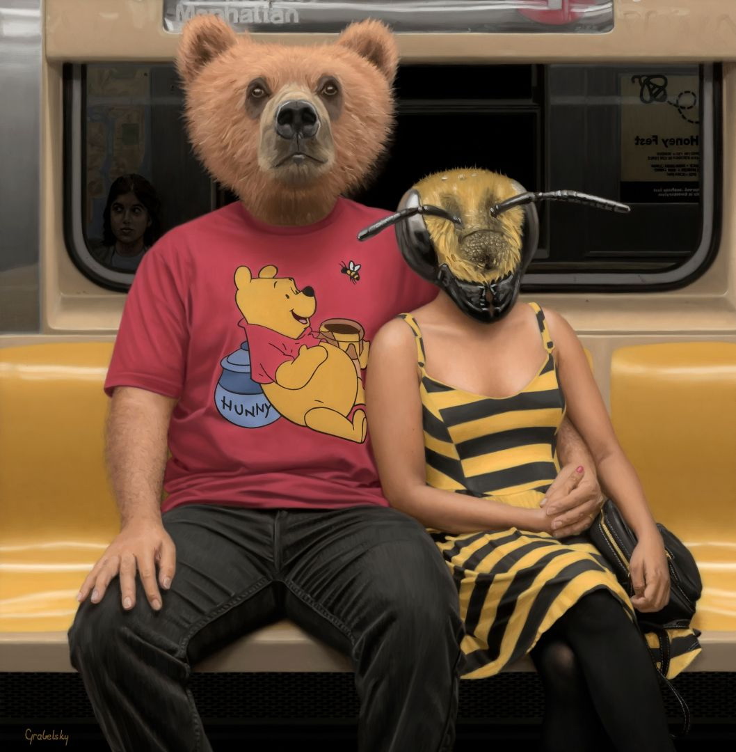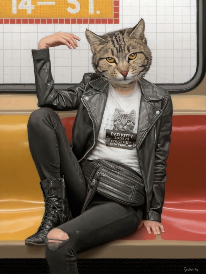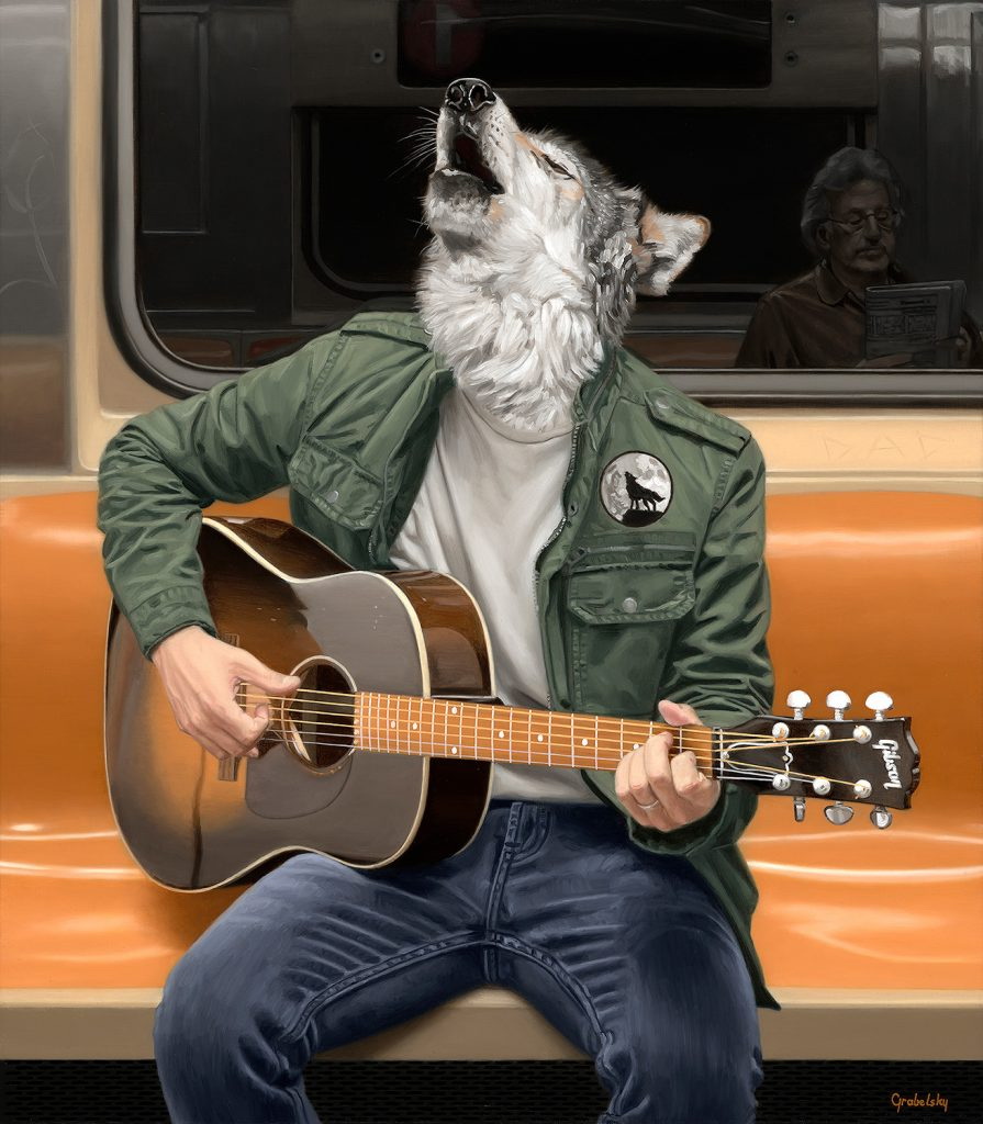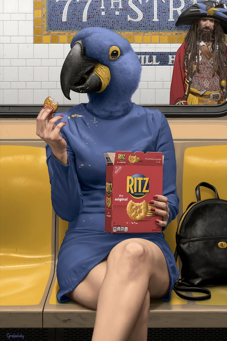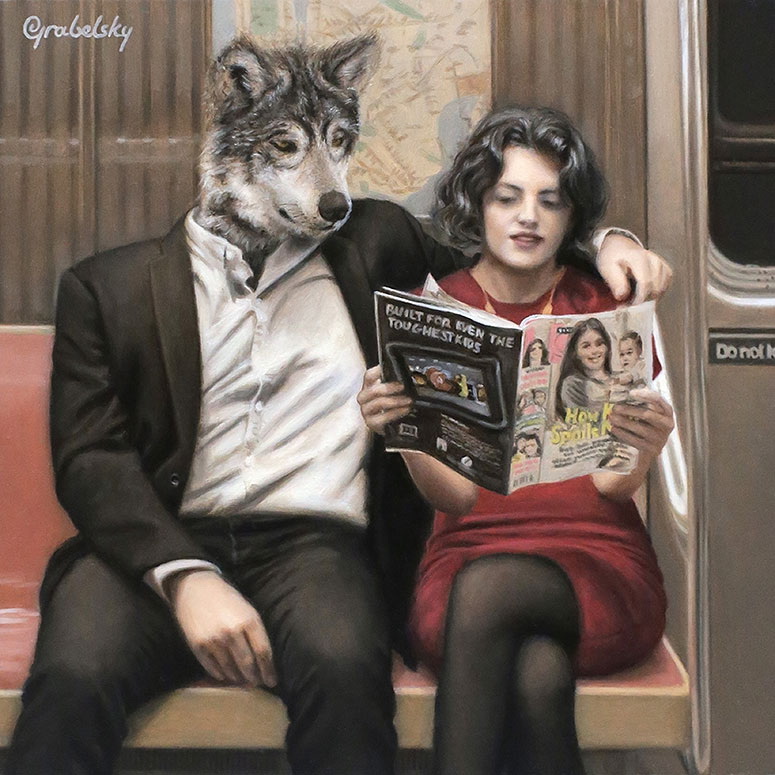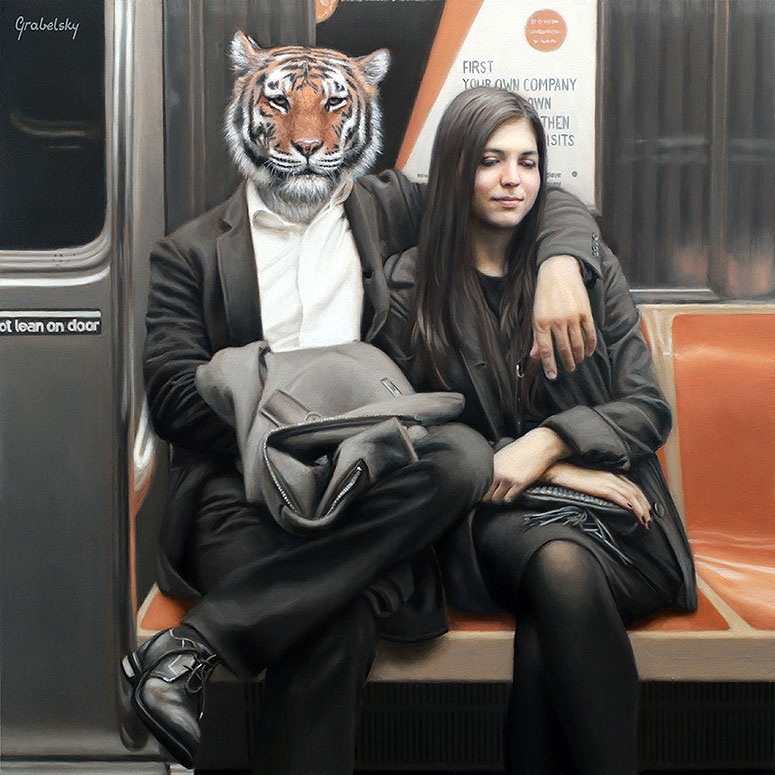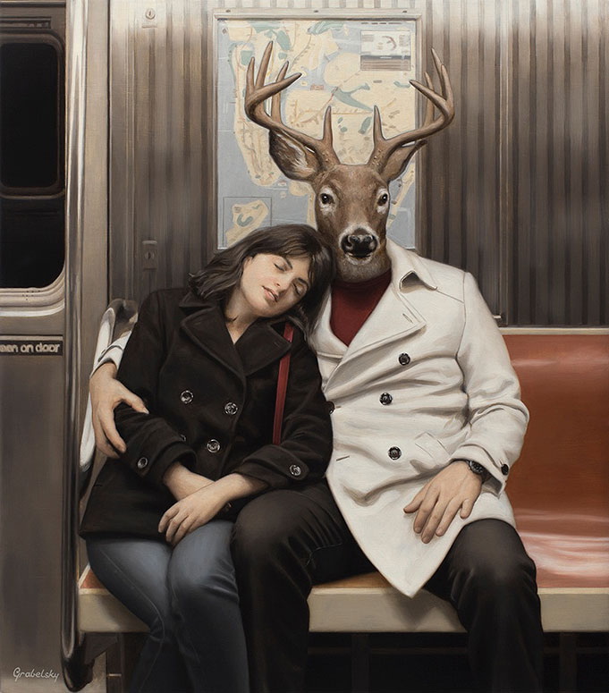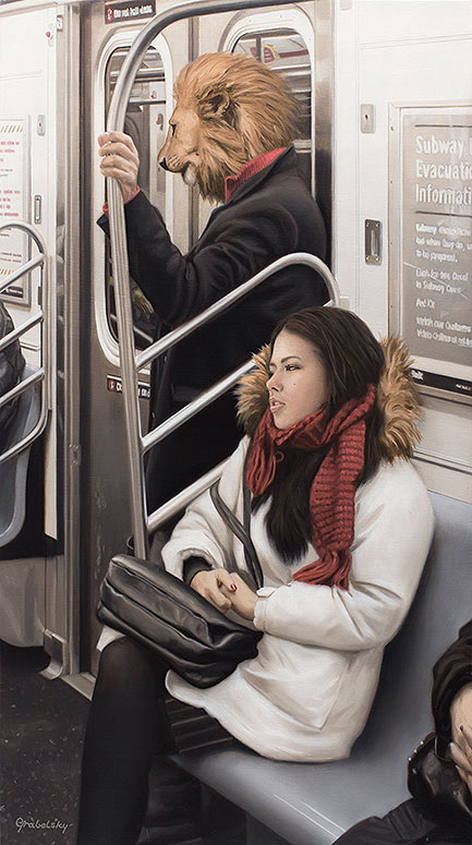 Matthew Grabelsky es un artista residente de Los Ángeles con un estilo hiperrealista que presenta retratos híbridos con humanos y animales. él se inspira en la fauna y en cualquier situación cotidiana que se puede presenciar de forma pública. Por ejemplo, un viaje en el transporte público.