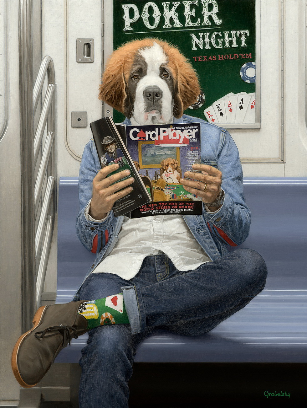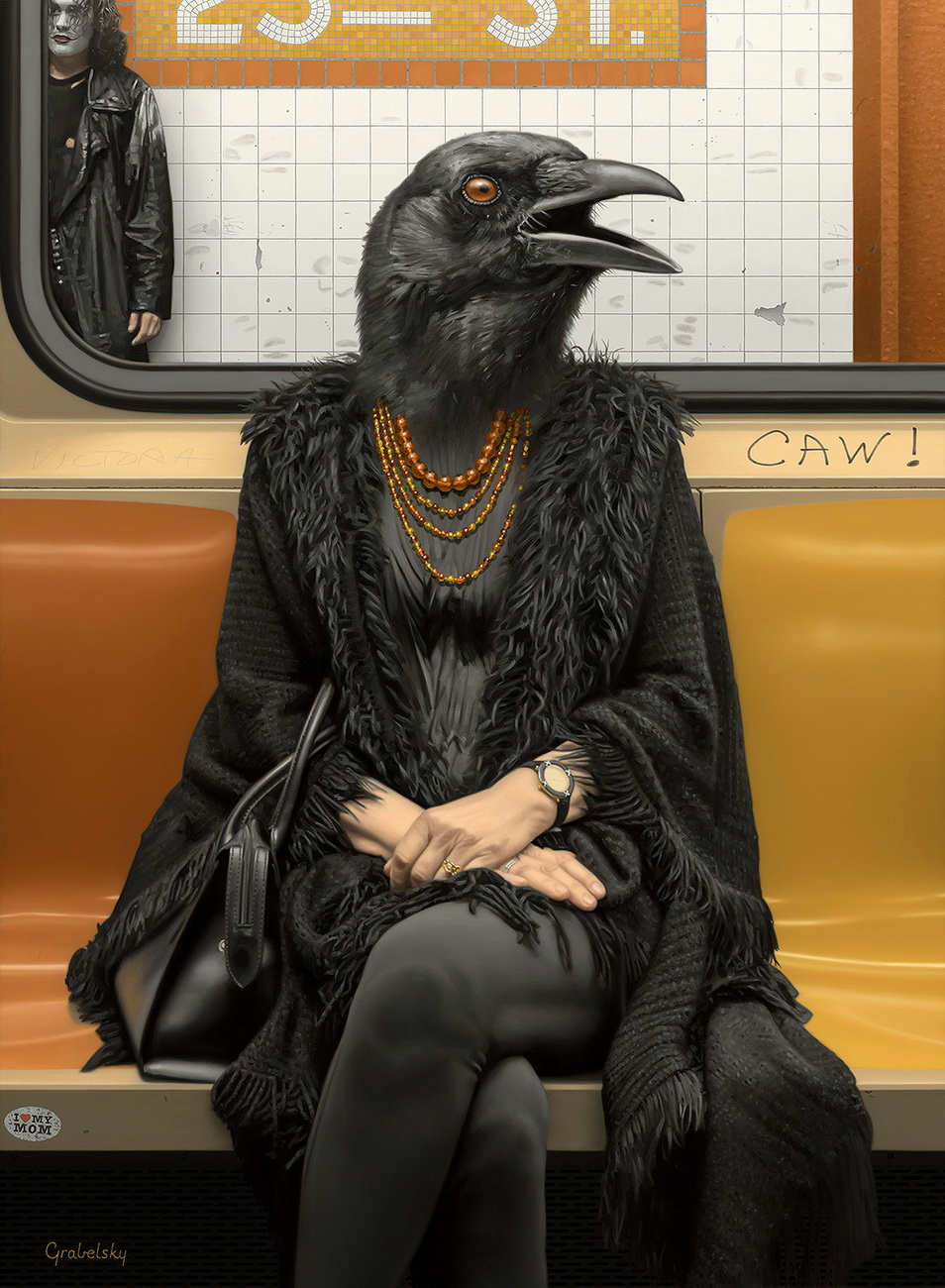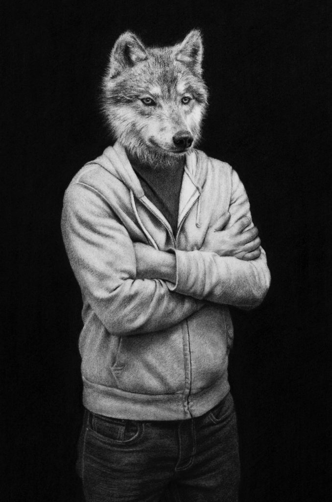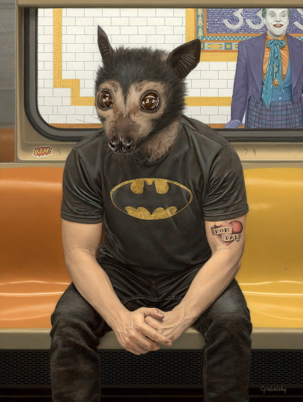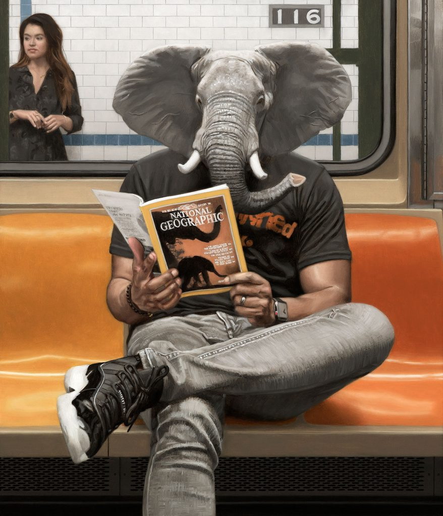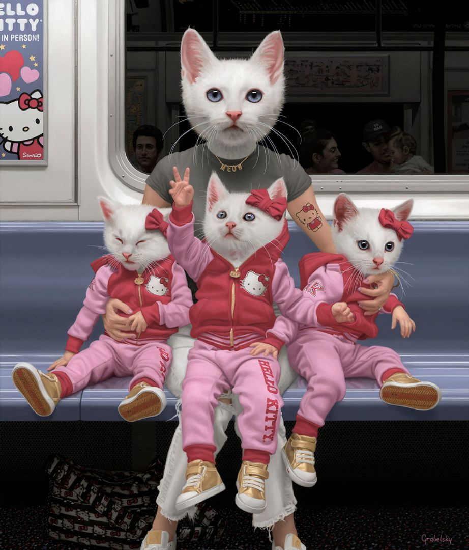 Matthew Grabelsky es un artista residente de Los Ángeles con un estilo hiperrealista que presenta retratos híbridos con humanos y animales. él se inspira en la fauna y en cualquier situación cotidiana que se puede presenciar de forma pública. Por ejemplo, un viaje en el transporte público.