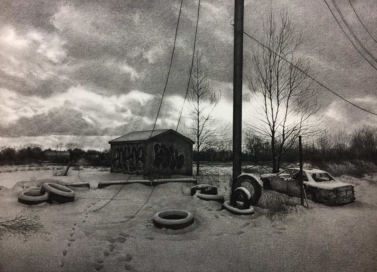 Stephanie Buer es conocida por sus conmovedores paisajes representativos en óleo y carboncillo. Combinando la claridad representacional y el control del realismo con el manejo sutilmente perceptivo de su medio. Su tratamiento impresionista de la luz es imperceptible, pero produce contrastes dramáticos, mientras que el nivel de inmersión de los detalles es asombroso. Estas obras monocromáticas oscuras son documentaciones laboriosas que combinan a la perfección el realismo observacional con una estilización extremadamente sutil e impulsada por el afecto que hace que la entrada a las escenas que propone sea físicamente palpable e íntimamente cercana.