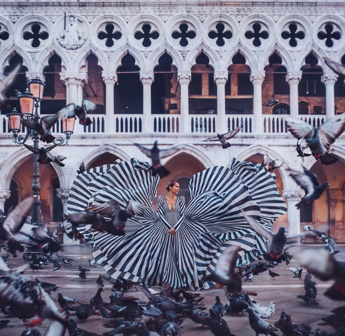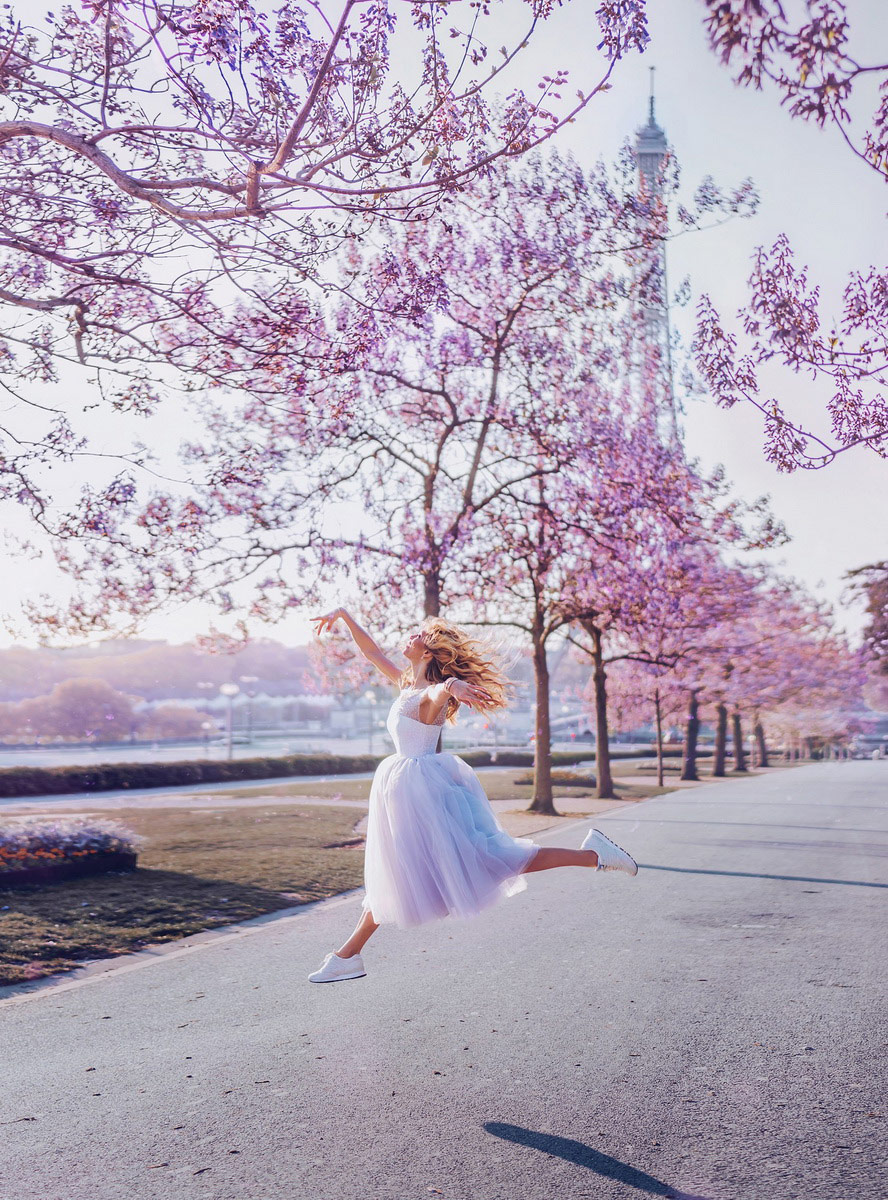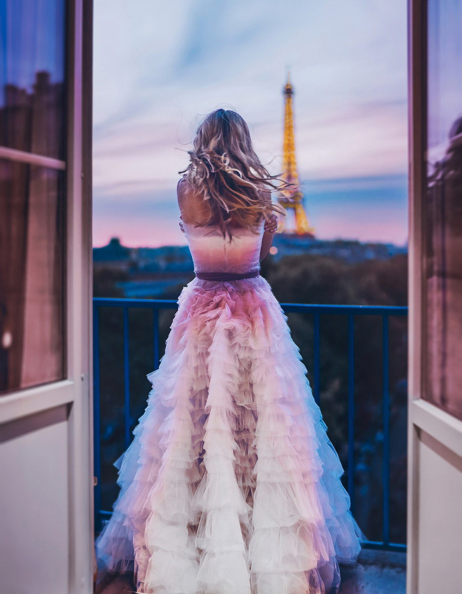 Una parte del trabajo de esta fotógrafa, se centra en retratar mujeres con preciosos vestidos por todo el mundo, imágenes atrapantes que dan ganas de verlas una y otra vez. Para esto viaja alrededor del mundo, junto con un equipo de ayudantes, para elegir los mejores escenarios y el vestido que mejor “combina” con el lugar.