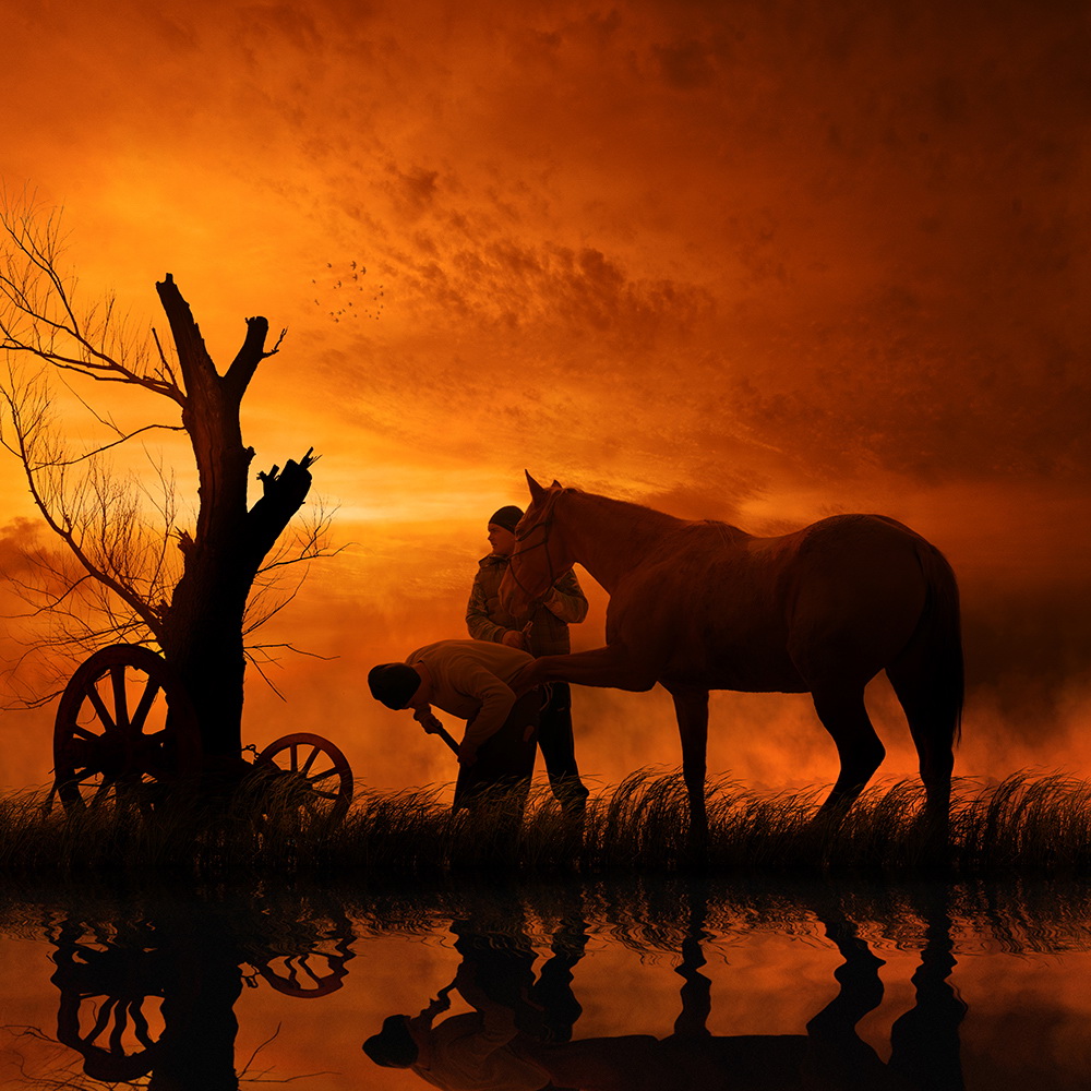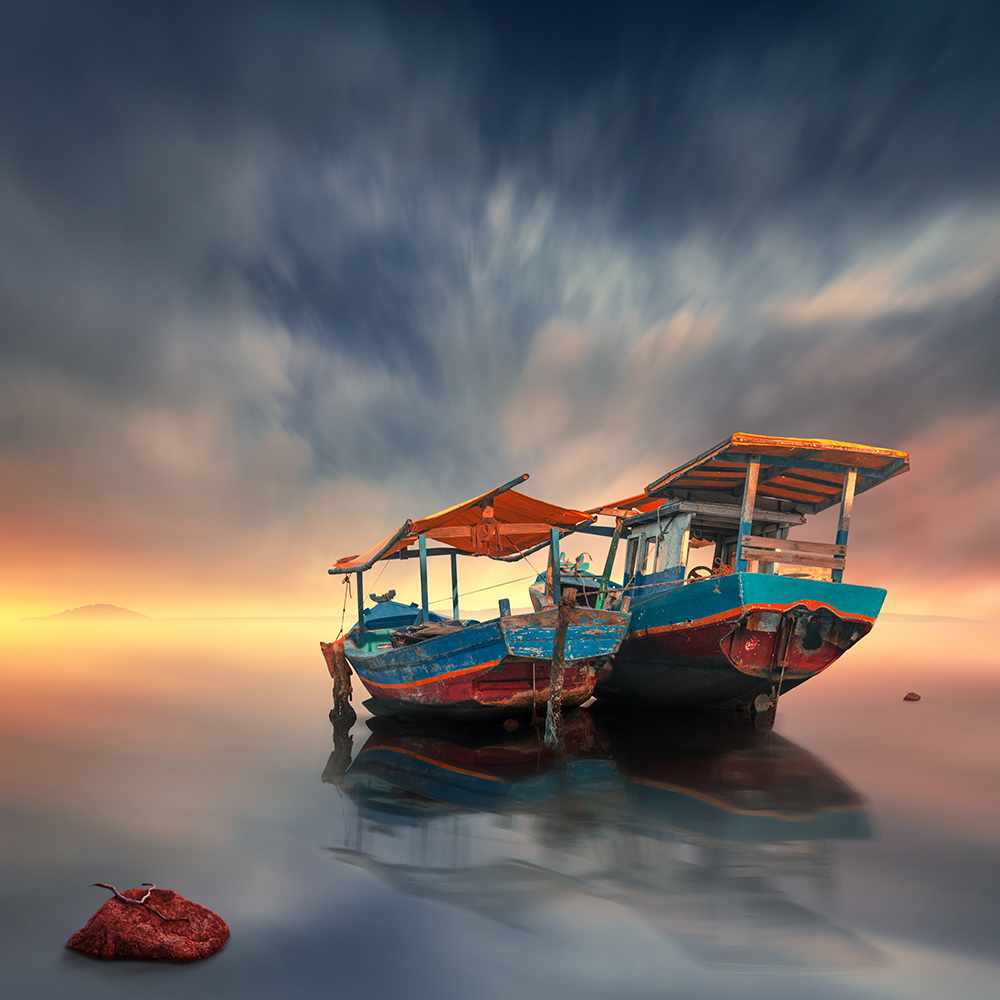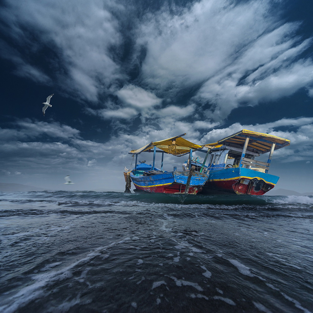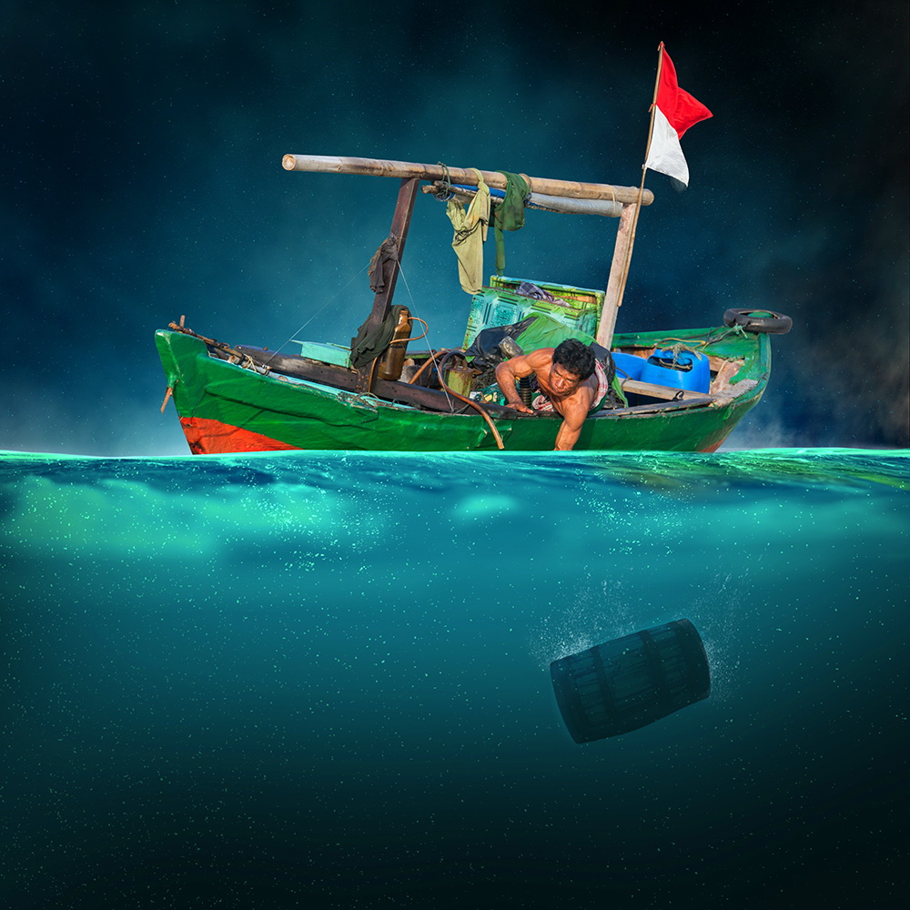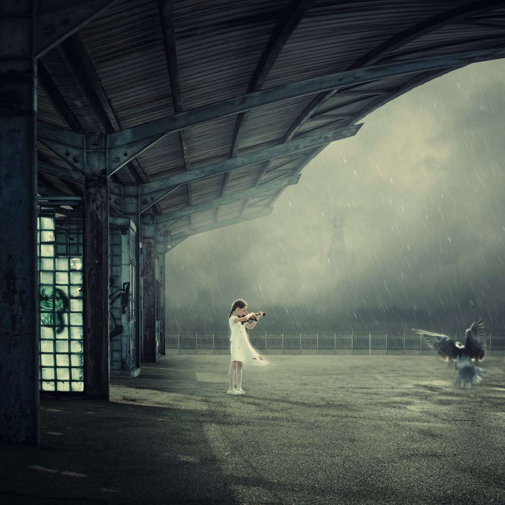 Comenzando con una imagen normal como punto de partida, Ionut, mezcla lo ordinario con lo extraordinario convirtiendo una simple escena de una muchacha pescando en un lago, en una imagen sorprendente de una niña cabalgando un enorme pez o las astas de un ciervo que se transforman en un par de árboles con aves volando entre las ramas.