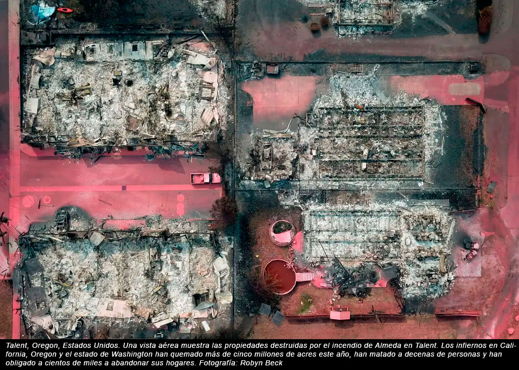 Creo que somos una mierdecita en manos de este planeta y que cuando se cabrea, se cabrea de verdad, pero es algo que no podemos evitar y sino preguntádselo al condenado bichito ese llamado covid19 que nos ha cambiado la vida malamente. Después está la parte que nos toca que es la de contaminar sin miramientos enfadando cada día más a este planeta y para fastidiar aún más, unos cabrones que provocan desastres solo por pasta o porque están como una chota. Estas fotografías pertenecen a varios fotógrafos y agencias, en la mayoría de los casos podrás ver esa información en el pie de foto de cada una de ellas, también encontrarás en el mismo lugar una indicación sobre la temática de la propia imagen. La verdad es que si utilizas un teléfono móvil deberás aumentar el tamaño de la imagen para poder ver esa información, así que mi sugerencia es que las visualices en un ordenador ya que ese texto merece la pena ser leído, por ejemplo, puedes encontrar una fotografía que no te diga gran cosa, pero si lees comprobarás que muchas no son tan inocentes o poco curiosas de lo que parecen.