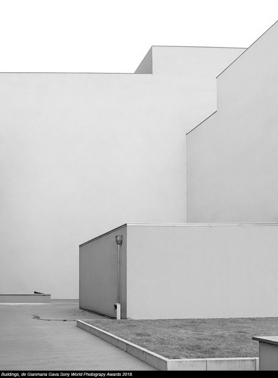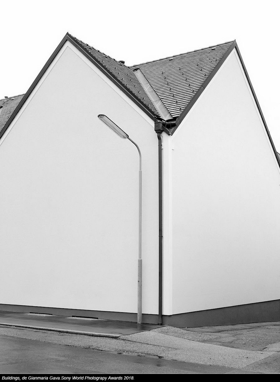 El italiano Gianmaria Gava se ha llevado el premio en Arquitectura con su trabajo "Buildings", aunque como él mismo se ha encargado decir en la apertura de la exposición, "yo no hago fotografía arquitectónica, yo retrato edificios". Sea como sea, Gava ha retratado construcciones sin distracciones en forma de ventanas o balcones, que califica de "distracciones visuales". Así, se puede apreciar el edificio "como formas geométricas puras". Este trabajo, capturado en Austria, cuestiona la función y la accesibilidad de la arquitectura en espacios tanto públicos como privados.