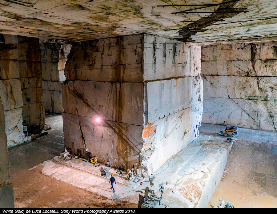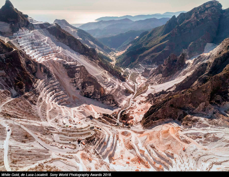 "White Gold" es la serie con la que el italiano Luca Locatelli se ha llevado el premio gracias a haber capturado la belleza de los Alpes Alpuanos, la región más rica en mármol del país transalpino. La demanda de este se ha disparado gracias al interés que ha despertado en Arabia Saudí y otros países del golfo. En sus imágenes se recoge la unión entre lo natural y lo industrial, con un inevitable toque de soledad