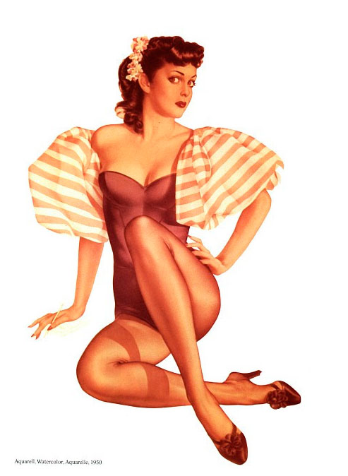 En realidad, y aunque en algún momento este tipo de fotografías se consideraron incluso como pornografía, las pin-up girls rara vez aparecían sin ropa, aunque sí en traje de baño, corsés, pantalones cortos… Se trataba de sugerir más que de enseñar.