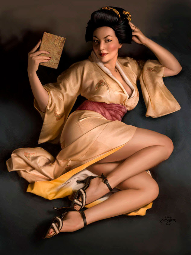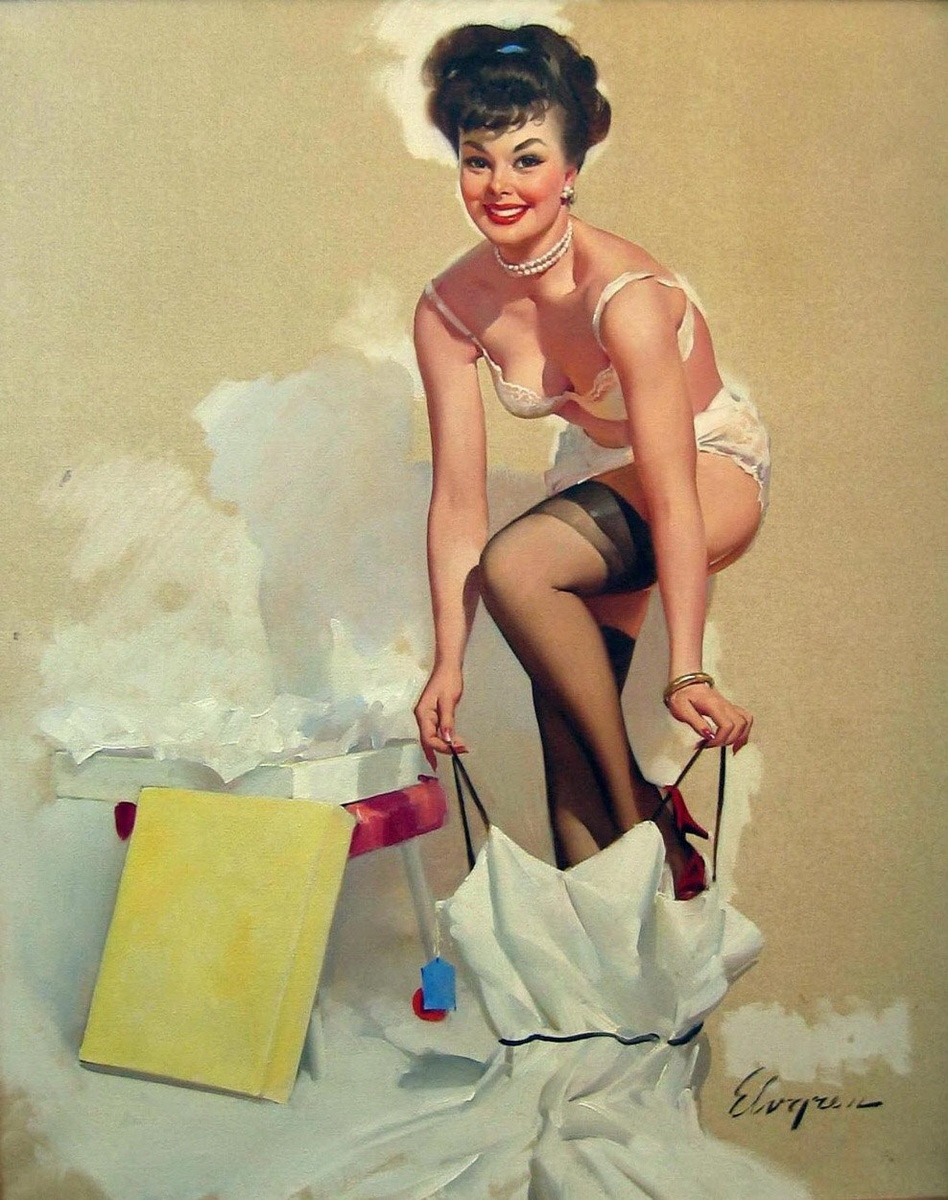 En realidad, y aunque en algún momento este tipo de fotografías se consideraron incluso como pornografía, las pin-up girls rara vez aparecían sin ropa, aunque sí en traje de baño, corsés, pantalones cortos… Se trataba de sugerir más que de enseñar.