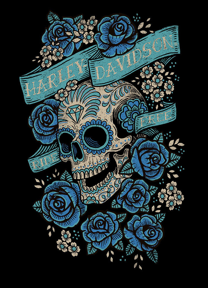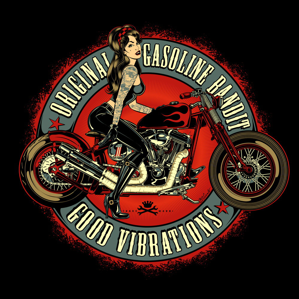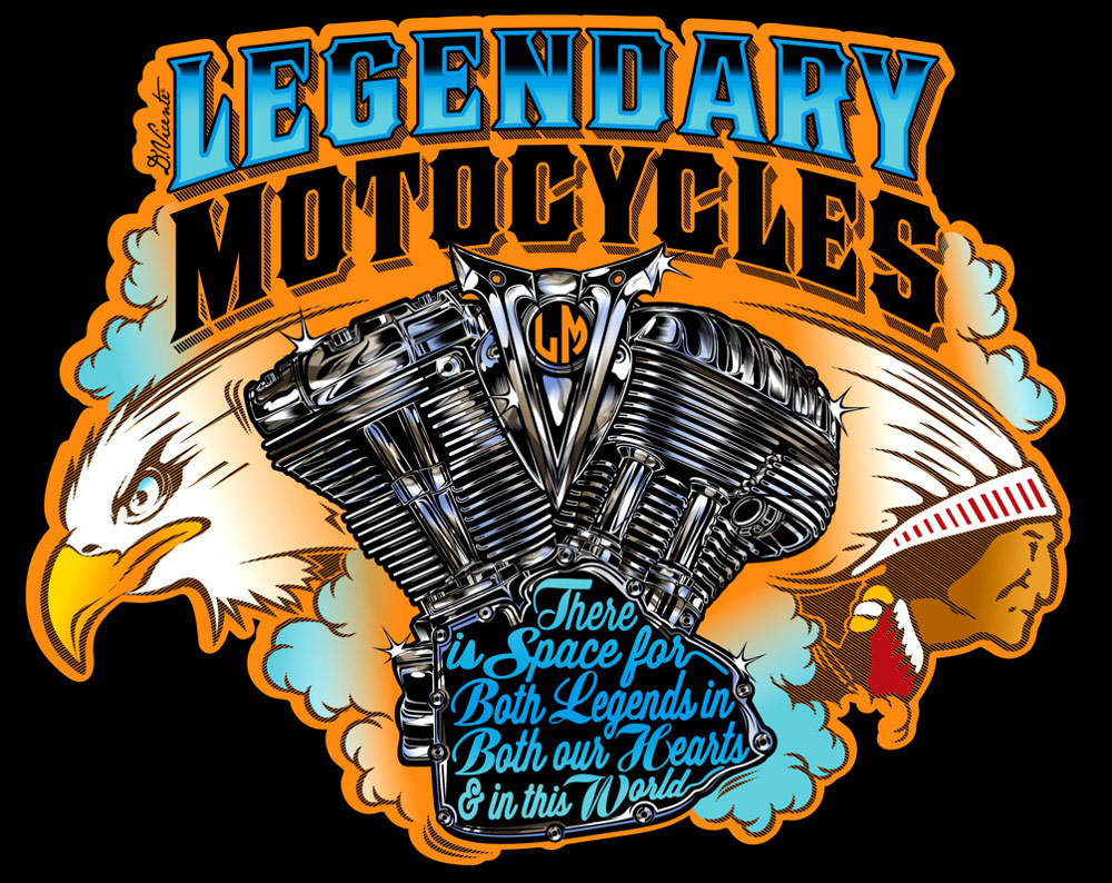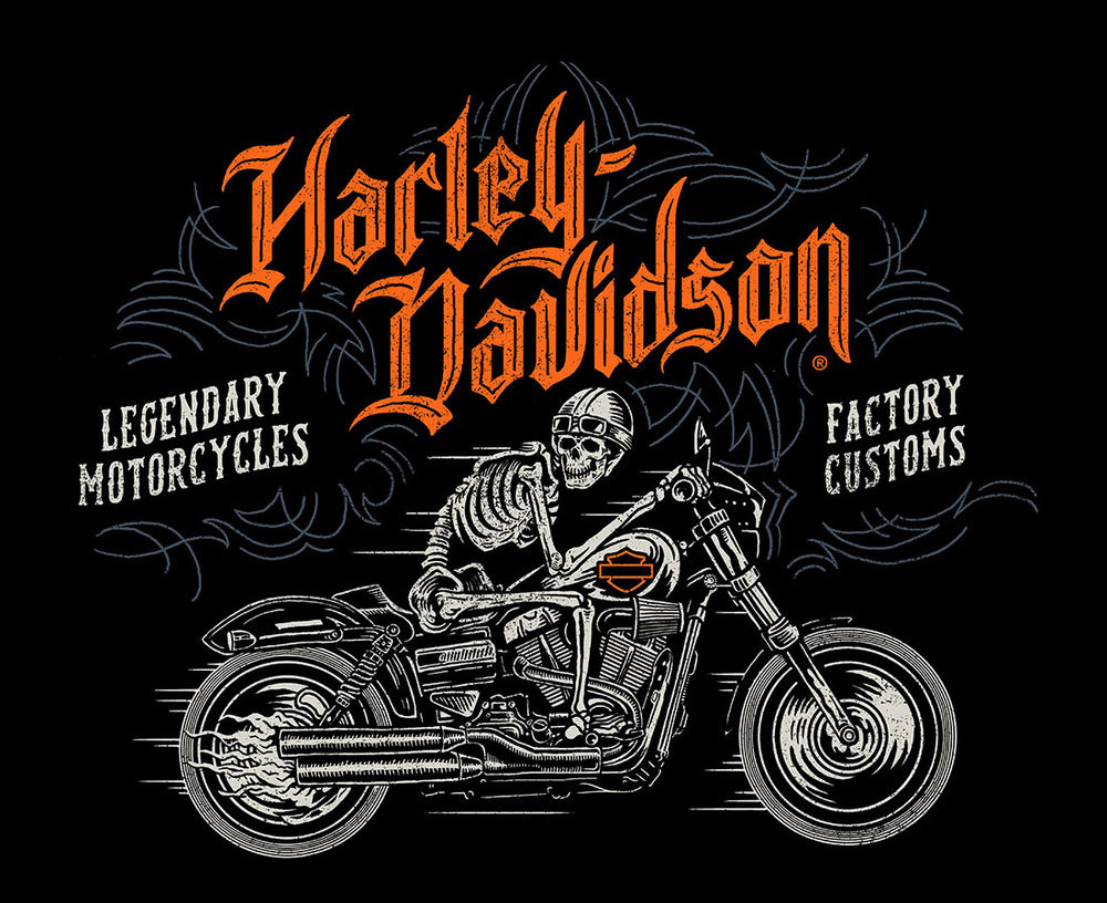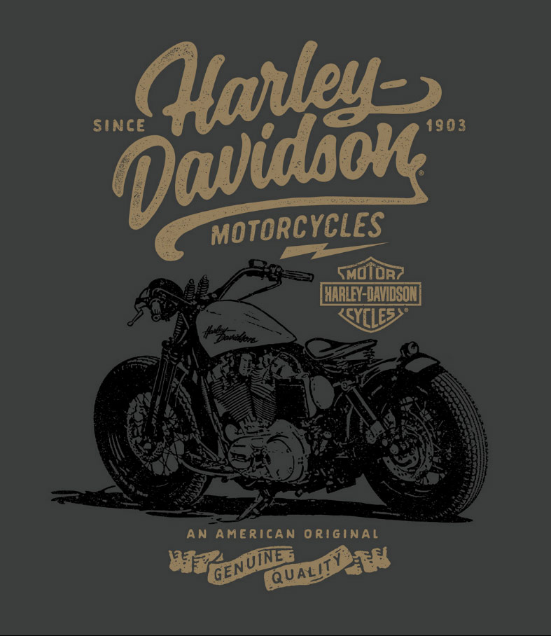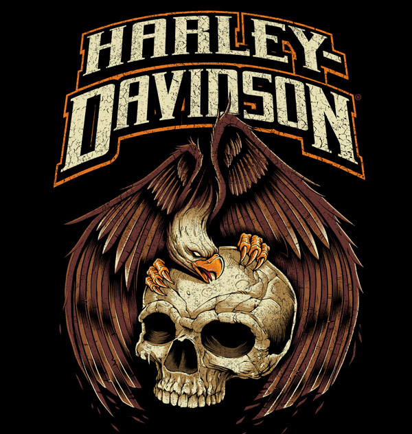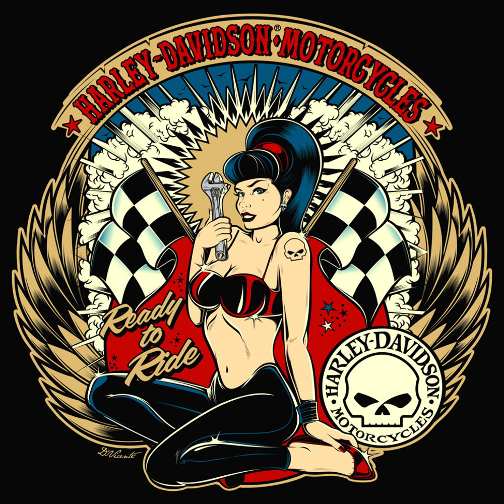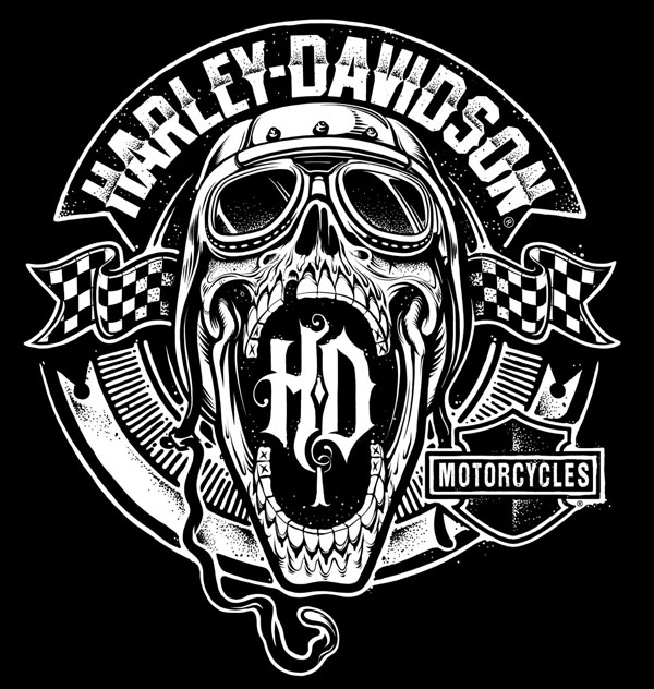 Colección de ilustraciones y fotos de la mítica motocicleta Harley-Davidson.