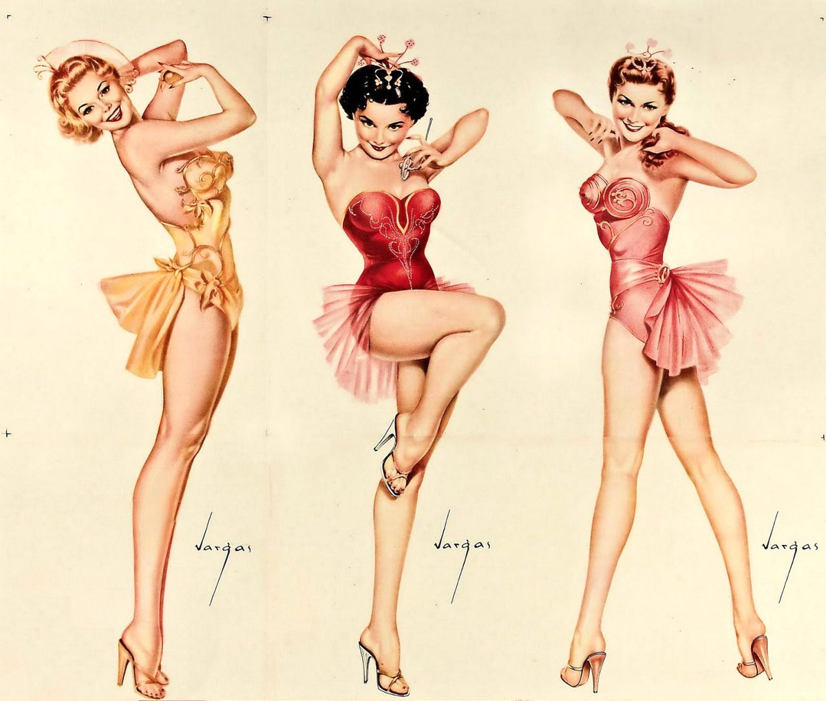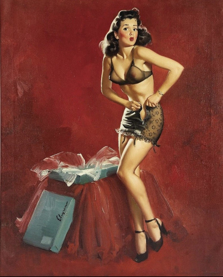 En realidad, y aunque en algún momento este tipo de fotografías se consideraron incluso como pornografía, las pin-up girls rara vez aparecían sin ropa, aunque sí en traje de baño, corsés, pantalones cortos… Se trataba de sugerir más que de enseñar.