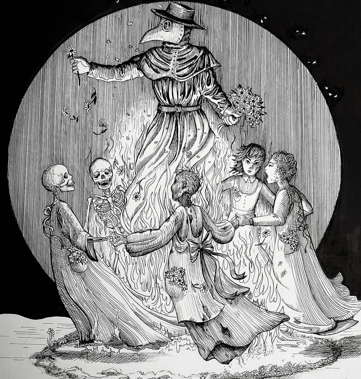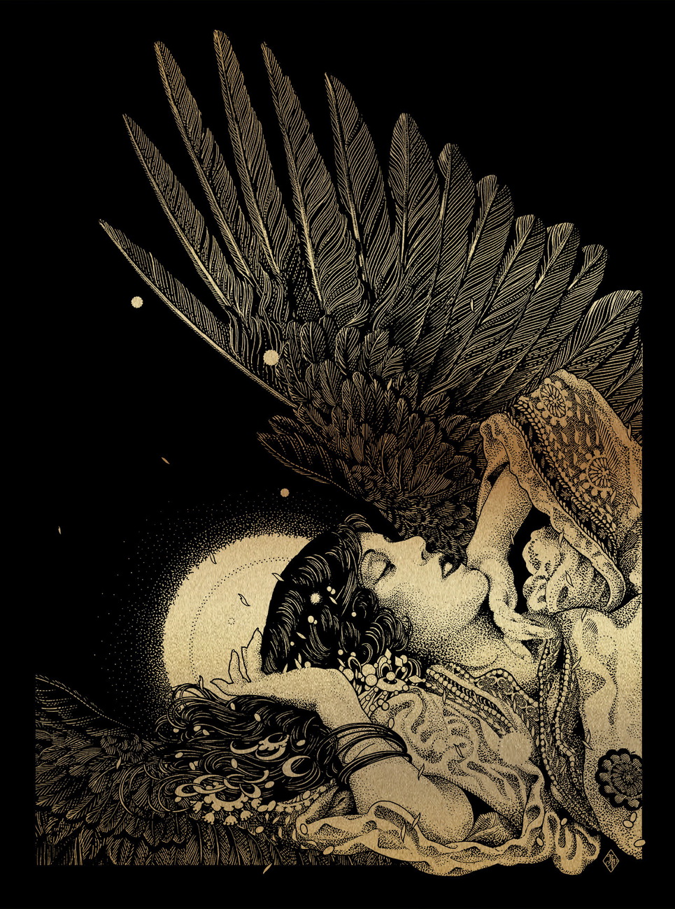 Sus sonidos eran apacibles y su respiración acompasada a los latidos de su corazón, se deslizaba con lentitud por entre las enredaderas de pino, su ala estaba manchada de sangre y bañaba su inmaculada piel blanca. Emitió un gruñido, al tiempo que se dejo caer sobre la maleza, cerrando sus ojos, dejando que el ensordecedor ruido de la batalla se perdiera en el infierno y que solo el sonido del viendo se escabullera con él.
