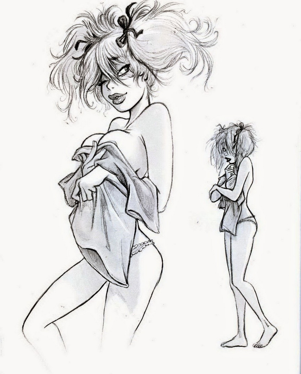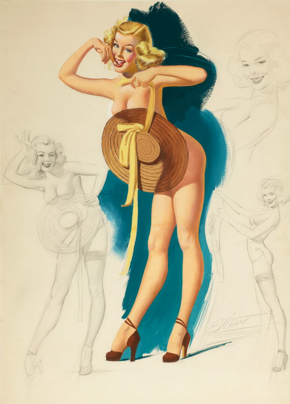En realidad, y aunque en algún momento este tipo de fotografías se consideraron incluso como pornografía, las pin-up girls rara vez aparecían sin ropa, aunque sí en traje de baño, corsés, pantalones cortos… Se trataba de sugerir más que de enseñar.