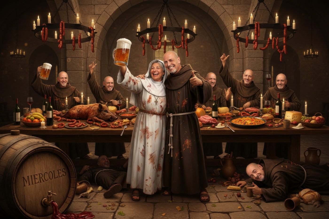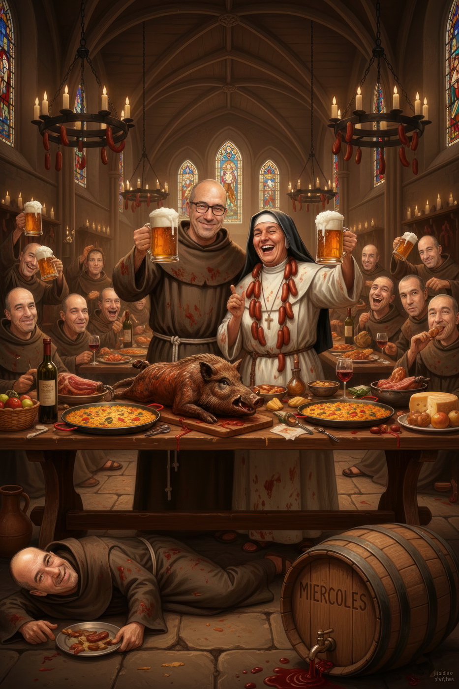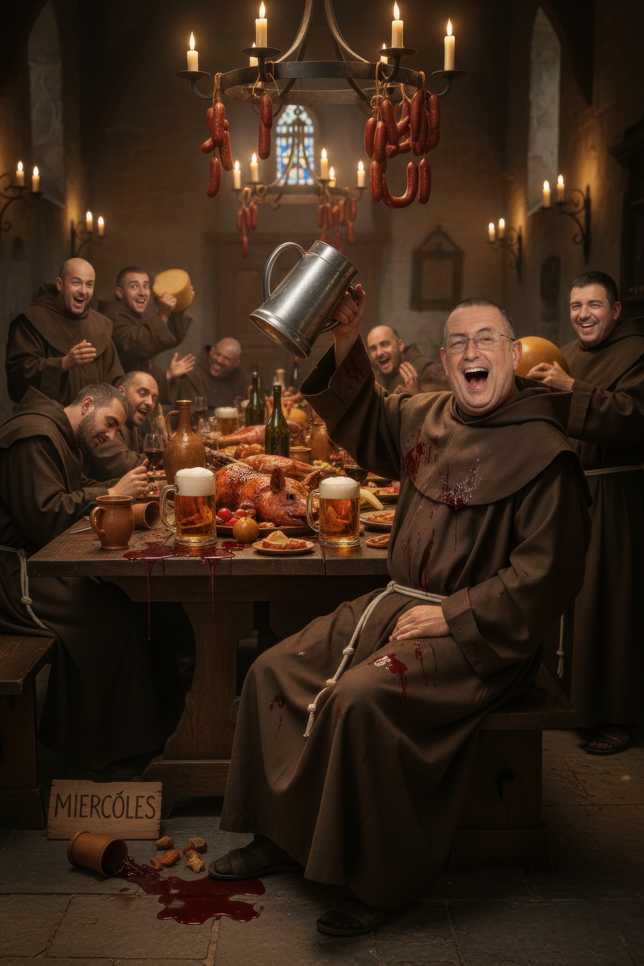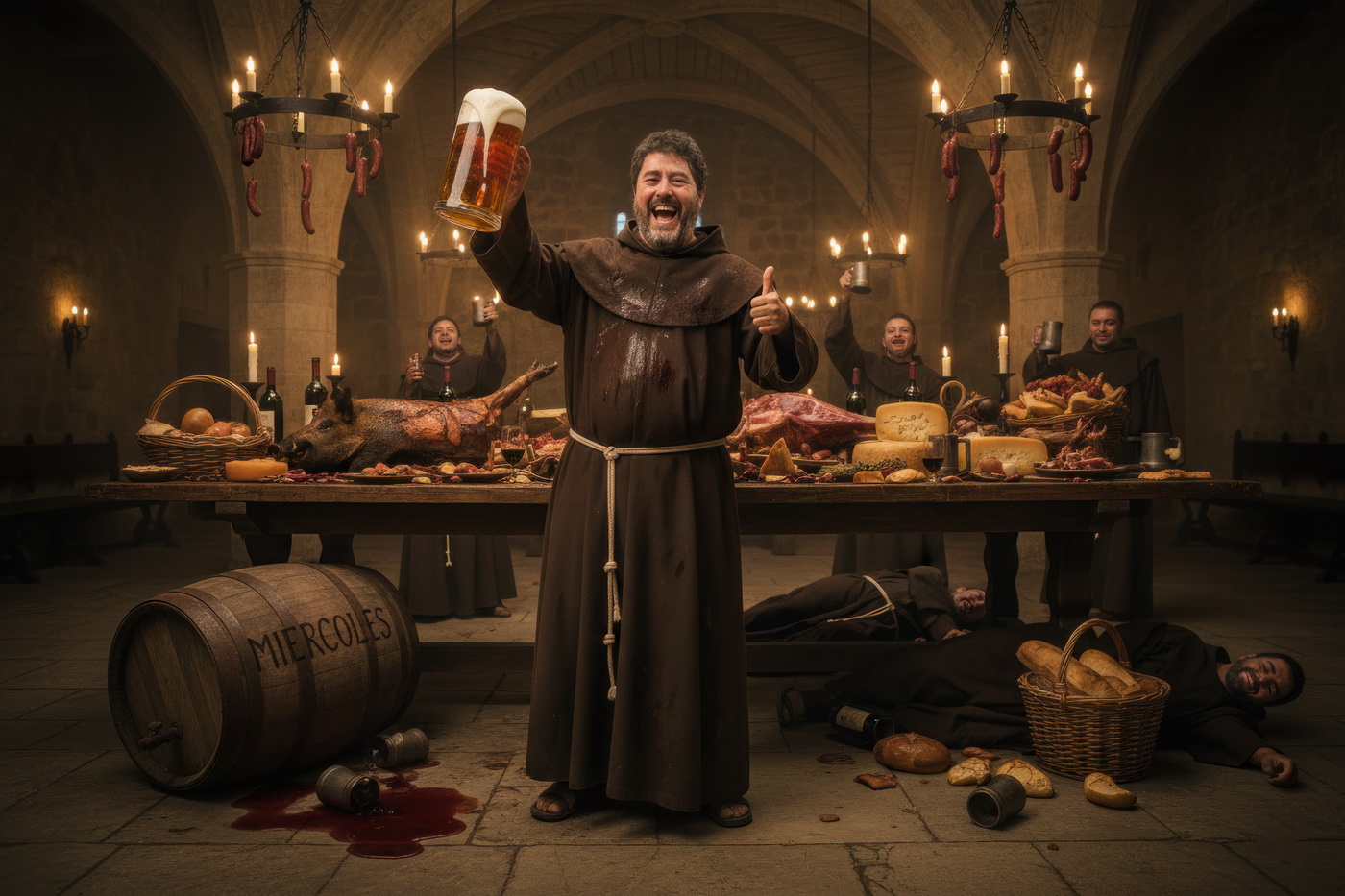A lo largo de la historia, especialmente en la Edad Media y parte de la Edad Moderna, hubo sectores de la Iglesia —sobre todo en altos cargos— que llevaban un estilo de vida bastante más cercano al banquete que a la austeridad: mesas llenas de carne, vino en abundancia y celebraciones que se parecían más a fiestas nobles que a retiros espirituales; muchos monasterios y abadías acumulaban riqueza y tierras, lo que facilitaba ese nivel de vida, y no era raro que se criticara internamente ese exceso, porque contrastaba bastante con la idea de humildad que se predicaba; de hecho, estas prácticas fueron uno de los motivos de reformas dentro de la propia Iglesia, ya que mientras algunos vivían con disciplina estricta, otros claramente entendieron el voto de pobreza como algo… bastante flexible.