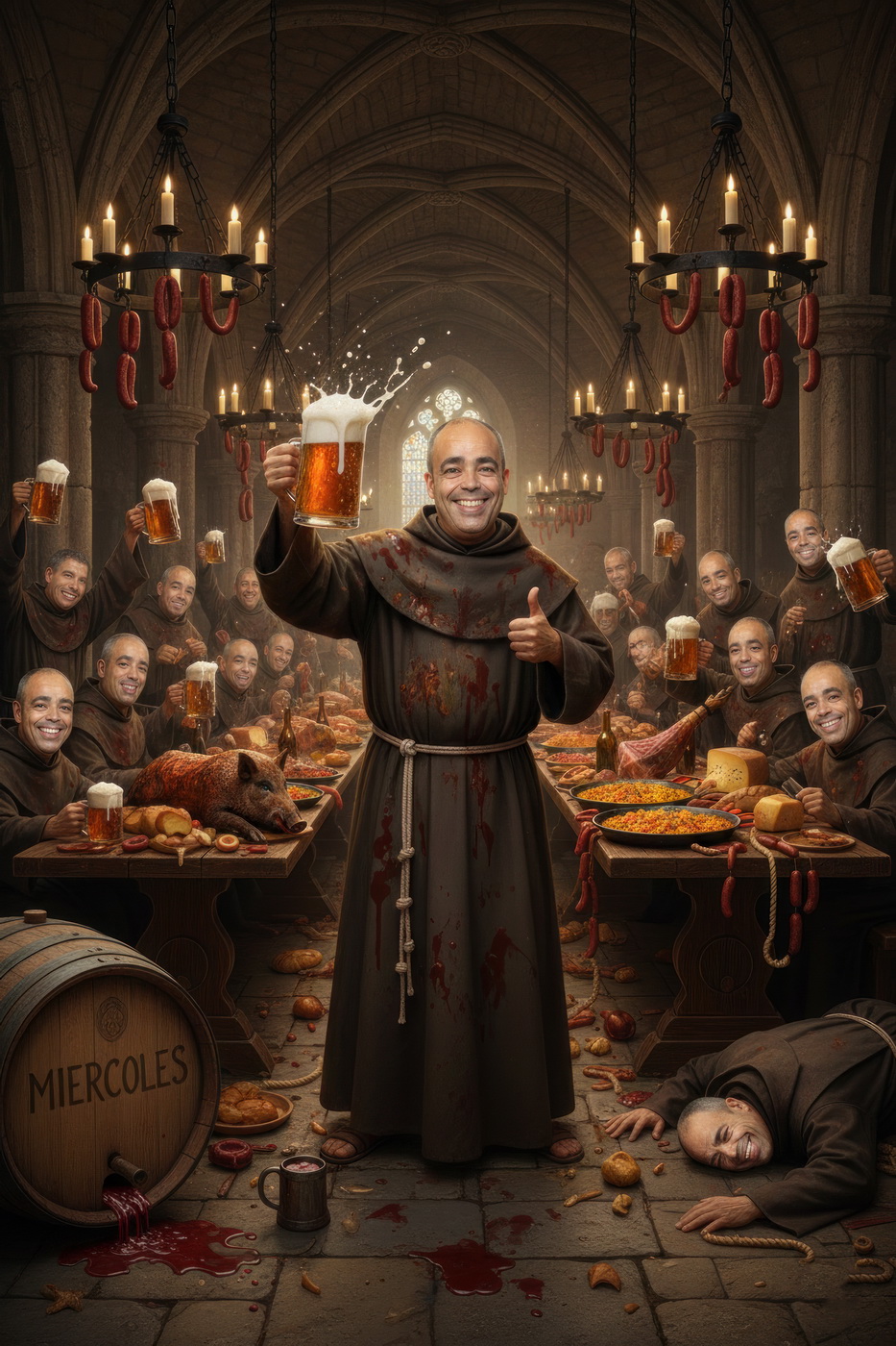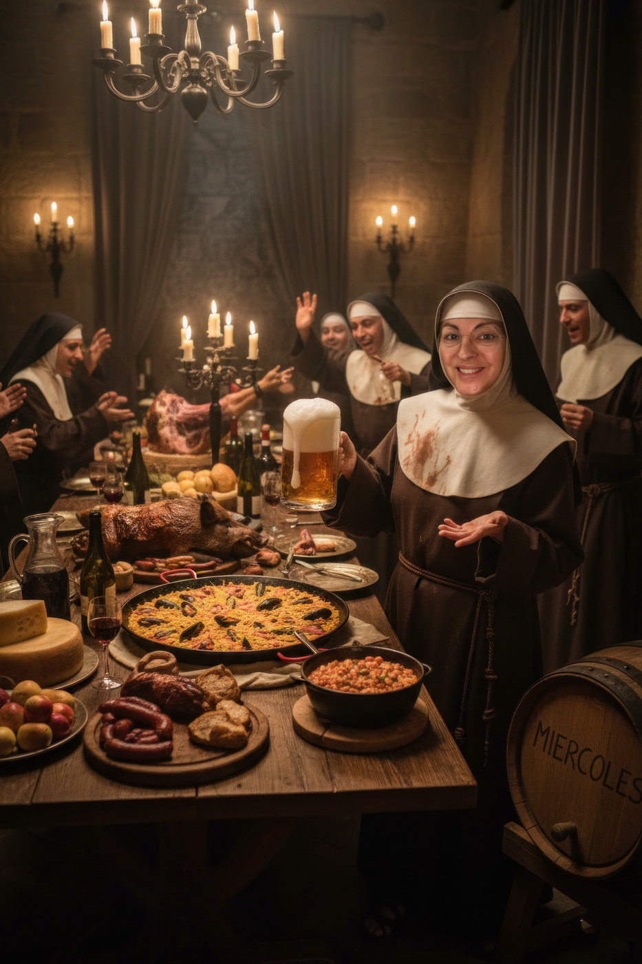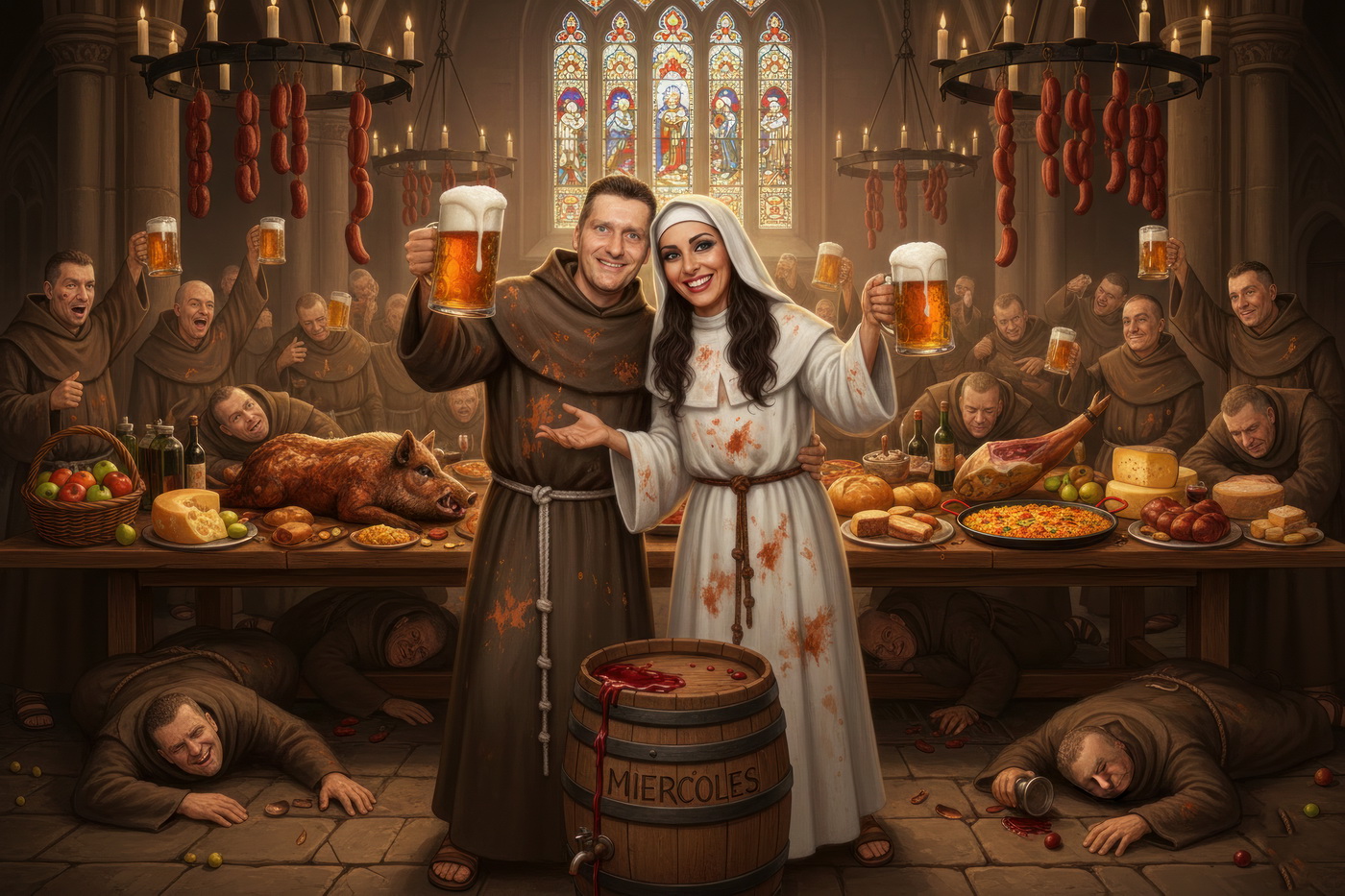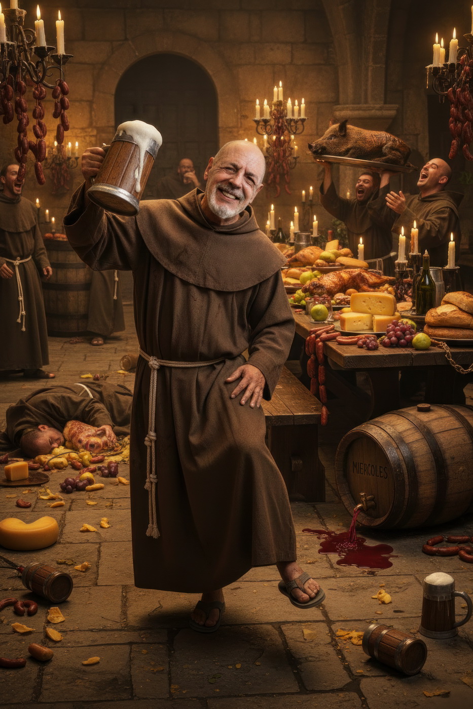 A lo largo de la historia, especialmente en la Edad Media y parte de la Edad Moderna, hubo sectores de la Iglesia —sobre todo en altos cargos— que llevaban un estilo de vida bastante más cercano al banquete que a la austeridad: mesas llenas de carne, vino en abundancia y celebraciones que se parecían más a fiestas nobles que a retiros espirituales; muchos monasterios y abadías acumulaban riqueza y tierras, lo que facilitaba ese nivel de vida, y no era raro que se criticara internamente ese exceso, porque contrastaba bastante con la idea de humildad que se predicaba; de hecho, estas prácticas fueron uno de los motivos de reformas dentro de la propia Iglesia, ya que mientras algunos vivían con disciplina estricta, otros claramente entendieron el voto de pobreza como algo… bastante flexible.