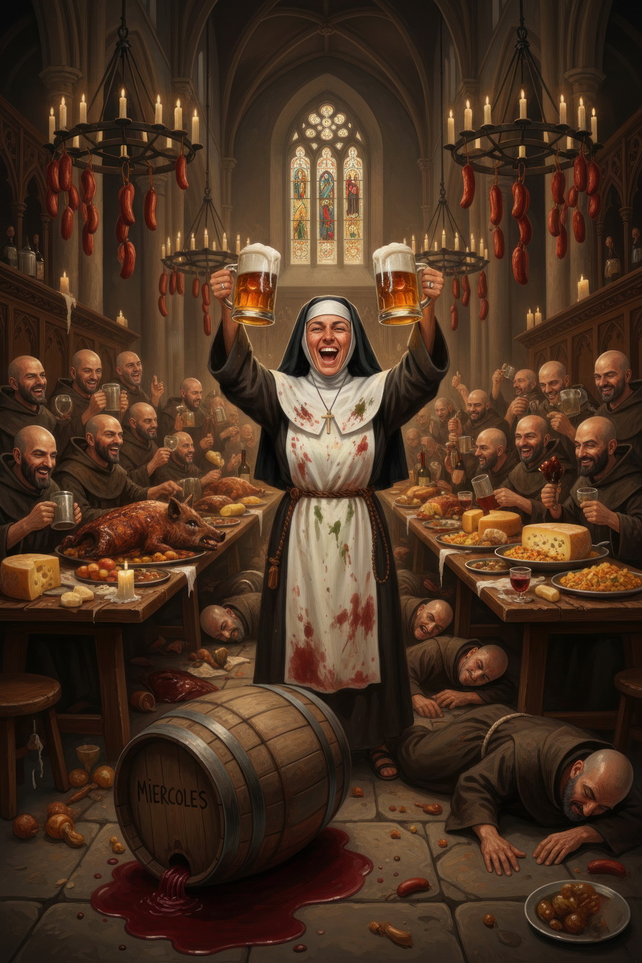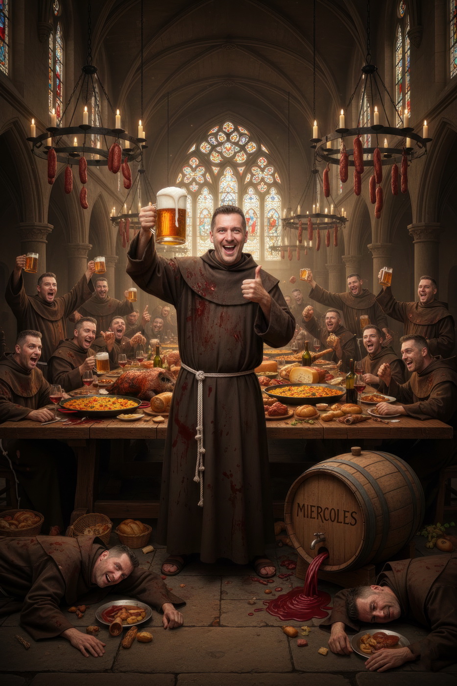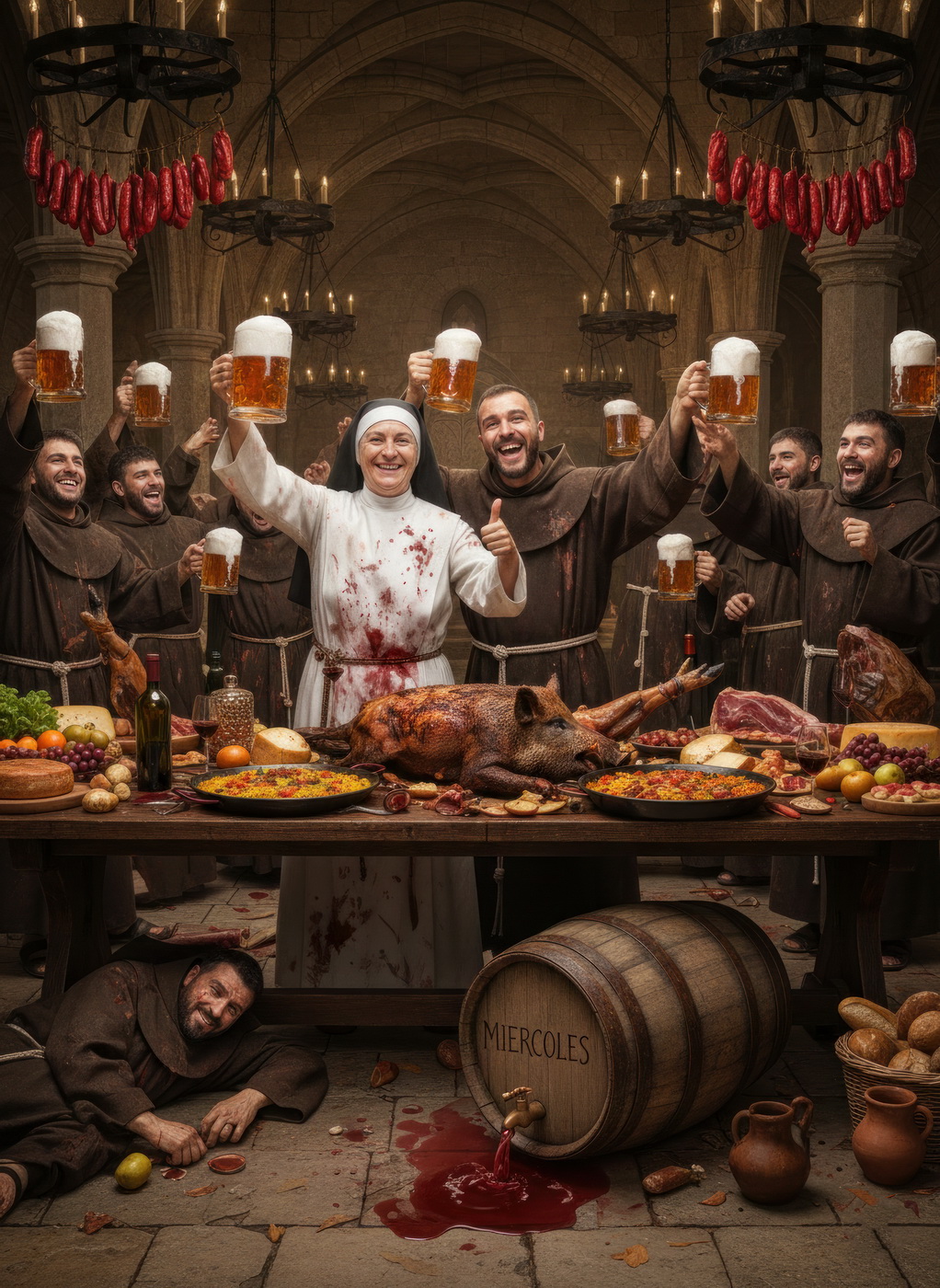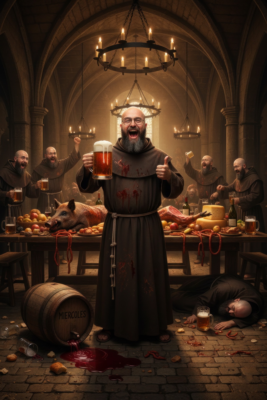 A lo largo de la historia, especialmente en la Edad Media y parte de la Edad Moderna, hubo sectores de la Iglesia —sobre todo en altos cargos— que llevaban un estilo de vida bastante más cercano al banquete que a la austeridad: mesas llenas de carne, vino en abundancia y celebraciones que se parecían más a fiestas nobles que a retiros espirituales; muchos monasterios y abadías acumulaban riqueza y tierras, lo que facilitaba ese nivel de vida, y no era raro que se criticara internamente ese exceso, porque contrastaba bastante con la idea de humildad que se predicaba; de hecho, estas prácticas fueron uno de los motivos de reformas dentro de la propia Iglesia, ya que mientras algunos vivían con disciplina estricta, otros claramente entendieron el voto de pobreza como algo… bastante flexible.