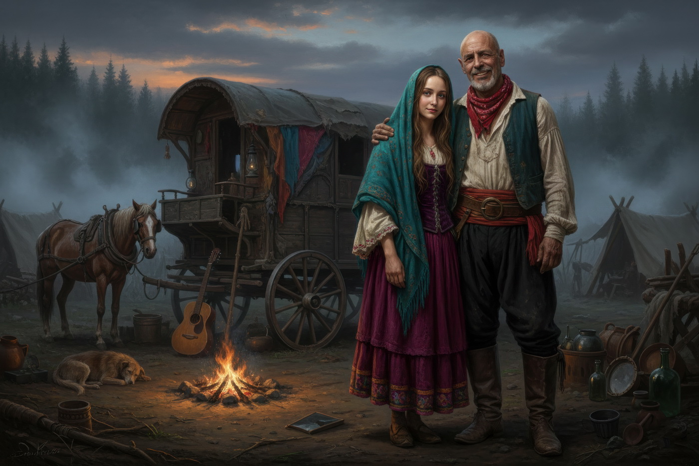 Carretera, polvo y vida sin plan B. Esto va de gitanos en la España del siglo XVIII, moviéndose entre caminos, ferias y pueblos donde no siempre eran bien recibidos, viviendo de oficios como la forja, el trato de animales o el espectáculo, y esquivando leyes que muchas veces estaban hechas directamente contra ellos; aquí no hay un protagonista único, pero el contexto manda: vida nómada, vigilancia constante y esa mezcla rara de marginación y fascinación que despertaban, porque mientras unos los veían como problema, otros no podían dejar de mirar su música, su ropa y su forma de vivir, que básicamente era libertad… con bastantes complicaciones detrás.