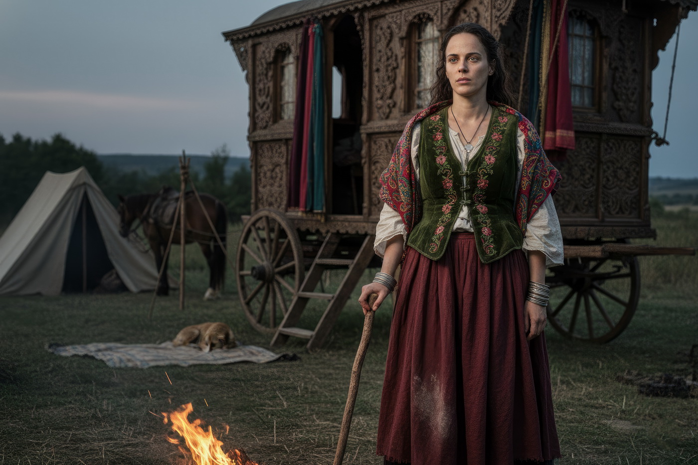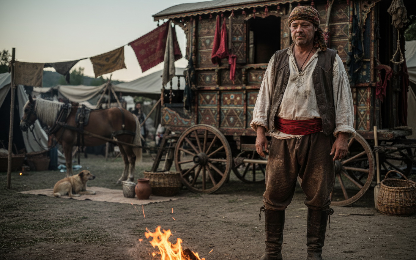 Carretera, polvo y vida sin plan B. Esto va de gitanos en la España del siglo XVIII, moviéndose entre caminos, ferias y pueblos donde no siempre eran bien recibidos, viviendo de oficios como la forja, el trato de animales o el espectáculo, y esquivando leyes que muchas veces estaban hechas directamente contra ellos; aquí no hay un protagonista único, pero el contexto manda: vida nómada, vigilancia constante y esa mezcla rara de marginación y fascinación que despertaban, porque mientras unos los veían como problema, otros no podían dejar de mirar su música, su ropa y su forma de vivir, que básicamente era libertad… con bastantes complicaciones detrás.